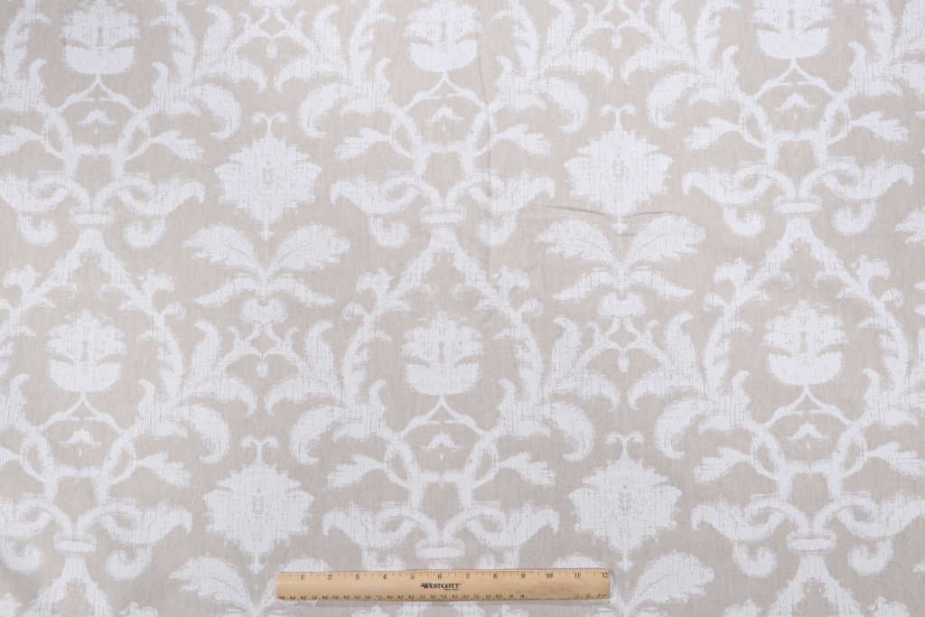 4.38 Yards Thibaut Anita Damask F98635 Printed Drapery Fabric in White on Natural Details