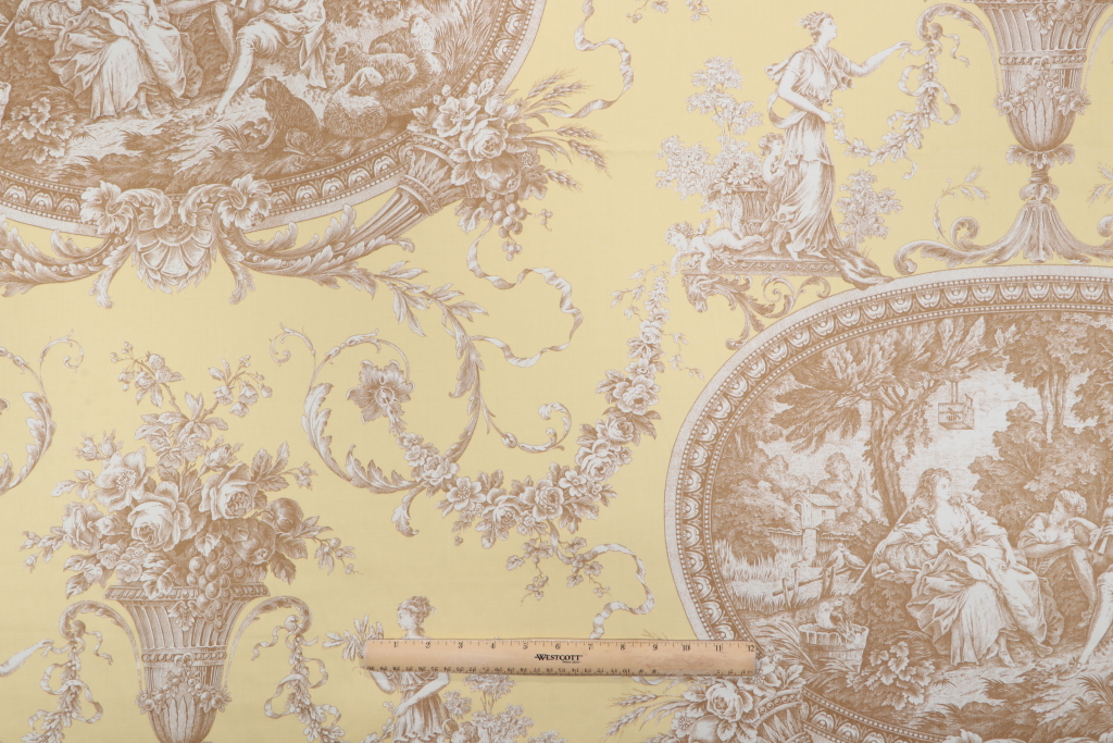 3.13 Yards Thibaut Biltmore F97314 Printed Cotton Drapery Fabric in Brown on Yellow Details