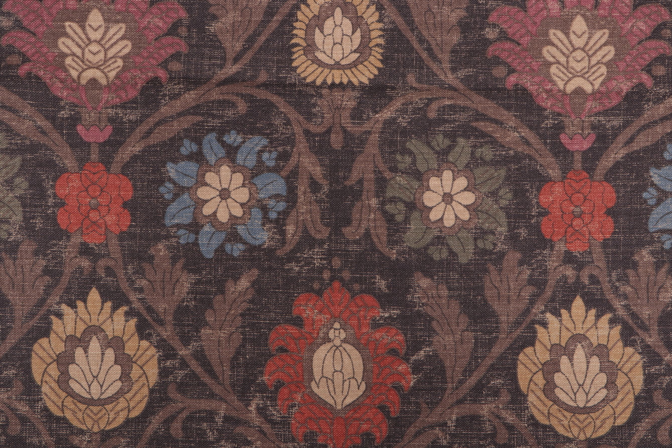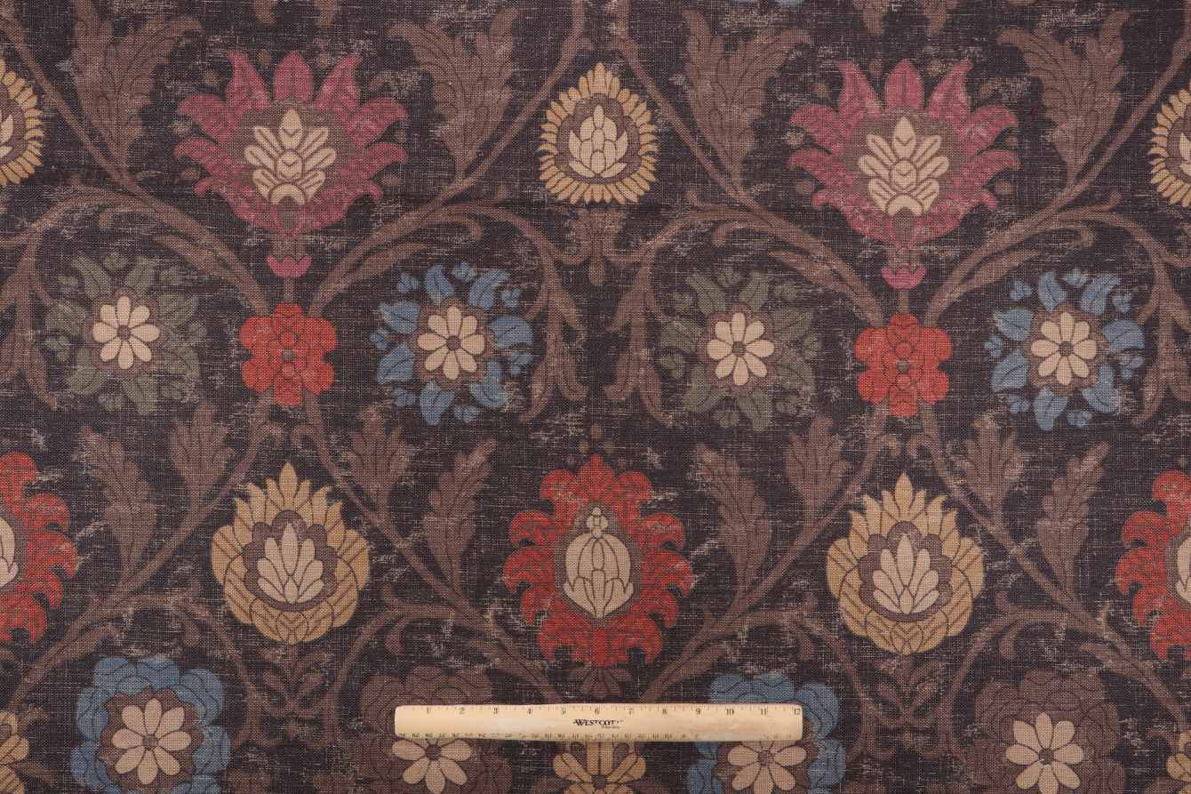 Thibaut Buccini F96055 Printed Drapery Fabric in Dark Brown is a remnant. Fabric remnants refer to leftover pieces of fabric from production runs at manufacturing sites or pieces that remain from by the yard stock. The lengths of these remnants can vary from a few inches to several yards and are typically sold at a reduced price, since they represent remaining inventory.