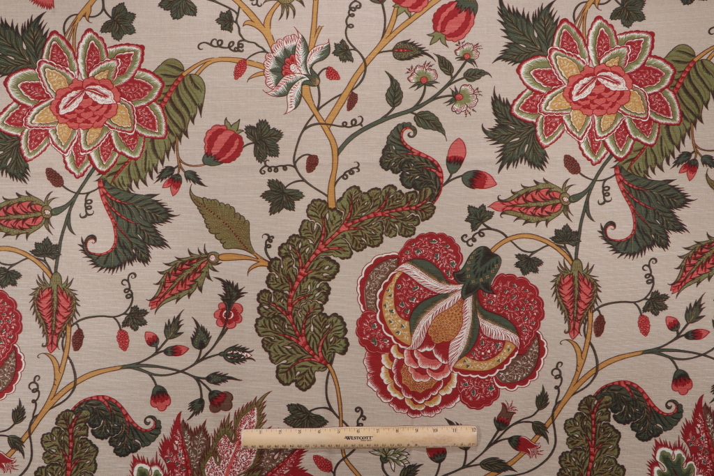 1 Yards Thibaut Dorchester F99011 Printed Drapery Fabric in Red & Tan Details