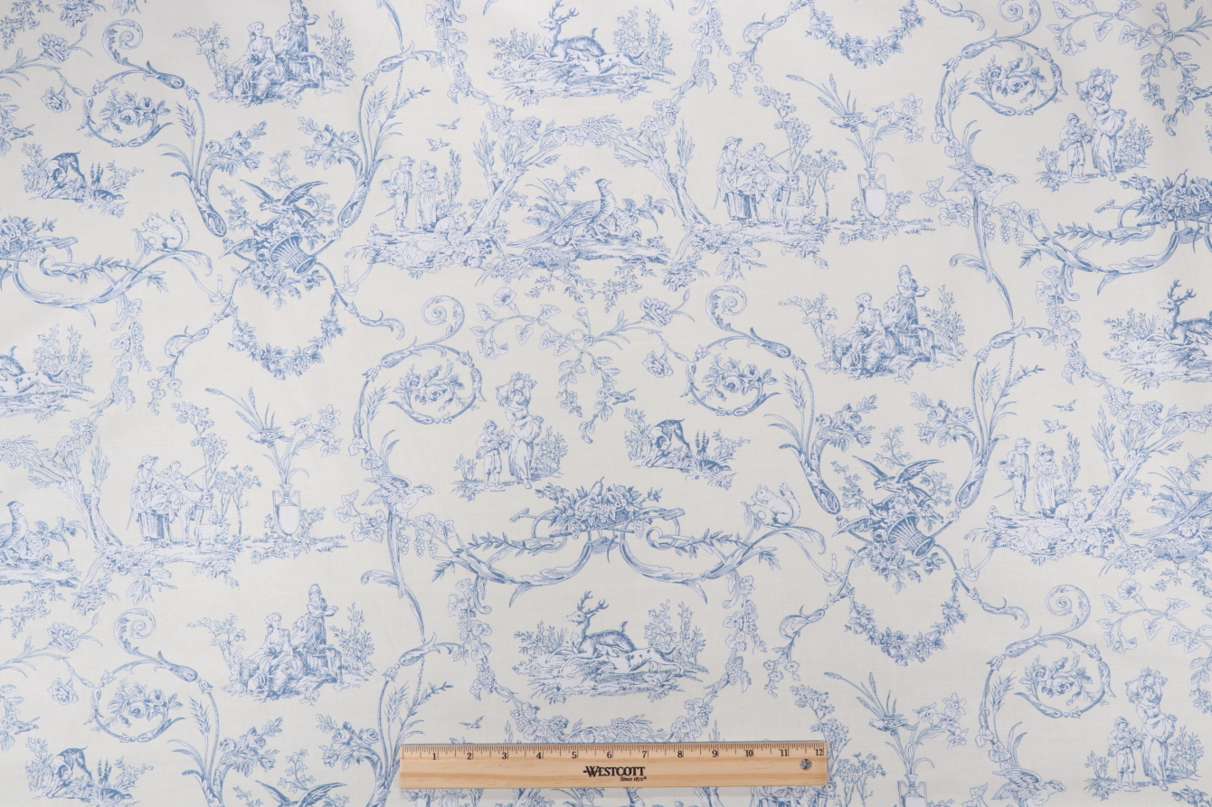 4.63 Yards Thibaut Paysannerie F97375 Printed Drapery Fabric in Blue on Cream Details