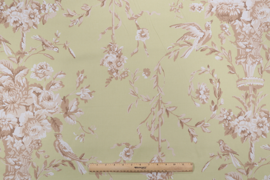 11 Yards Thibaut Robin F91321 Printed Cotton Drapery Fabric in Green Details