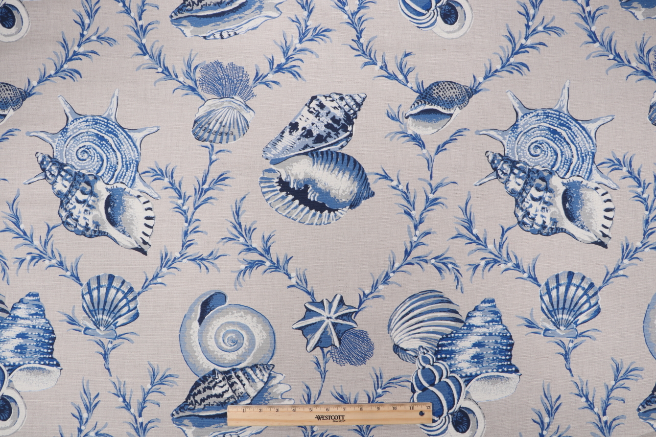 12 Yards Thibaut Sumba Shell F95744 Printed Linen Blend Drapery Fabric in Blue on Natural Details