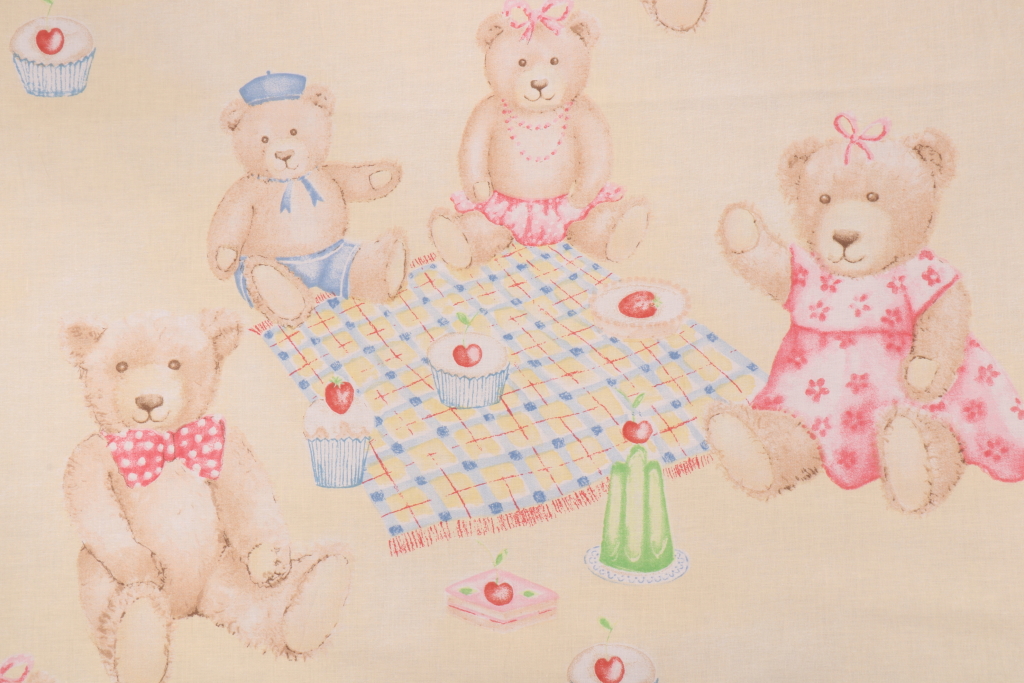 Thibaut Tea For Teddies Printed Cotton Drapery Fabric in Yellow. This printed fabric is perfect for window treatments, decorative pillows, handbags, light duty upholstery applications and almost any craft project. This fabric has a soft workable feel yet is stable and durable.