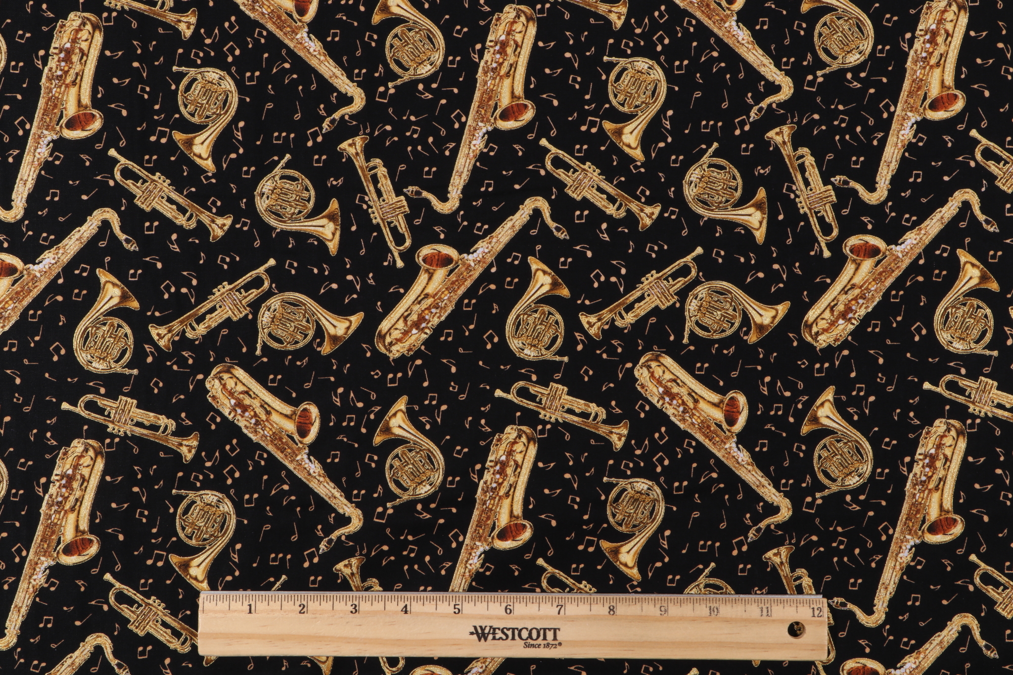 2.63 Yards Timeless Treasures Classical Music - Tossed Brass Instruments Printed Cotton Craft Fabric in Black Details
