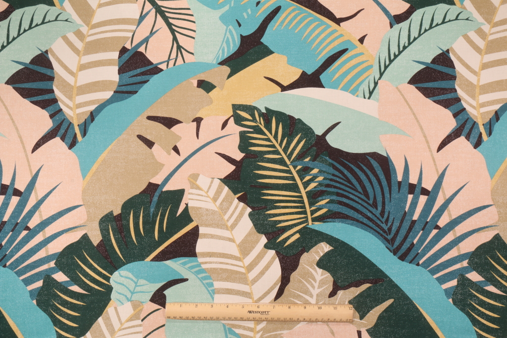 Presenting 1.88 yards of Palma Linda, an exquisite printed cotton drapery fabric by Tommy Bahama. Ideal for small projects such as pillowcases, fabric napkins, small craft projects, or as accents in larger sewing projects. Dark slate gray, tan, light pink, wheat, and silver feature prominently in this fabric. Make a statement with Tommy Bahama fabrics, crafted for elegance, durability, and timeless appeal. Note: If you are unsure about the suitability of this fabric for your specific use case please contact us prior to ordering.