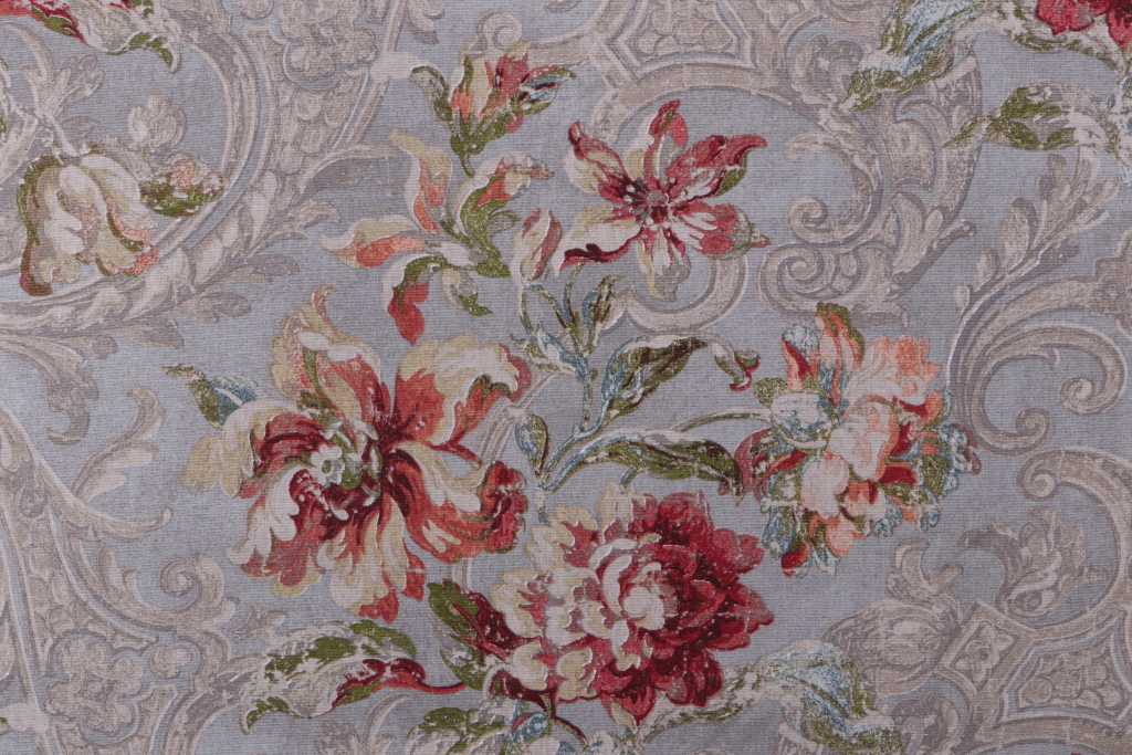 Waverly Fresco Flourish Printed Cotton Drapery Fabric in Jewel is a remnant. Fabric remnants refer to leftover pieces of fabric from production runs at manufacturing sites or pieces that remain from by the yard stock. The lengths of these remnants can vary from a few inches to several yards and are typically sold at a reduced price, since they represent remaining inventory.