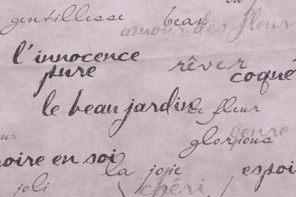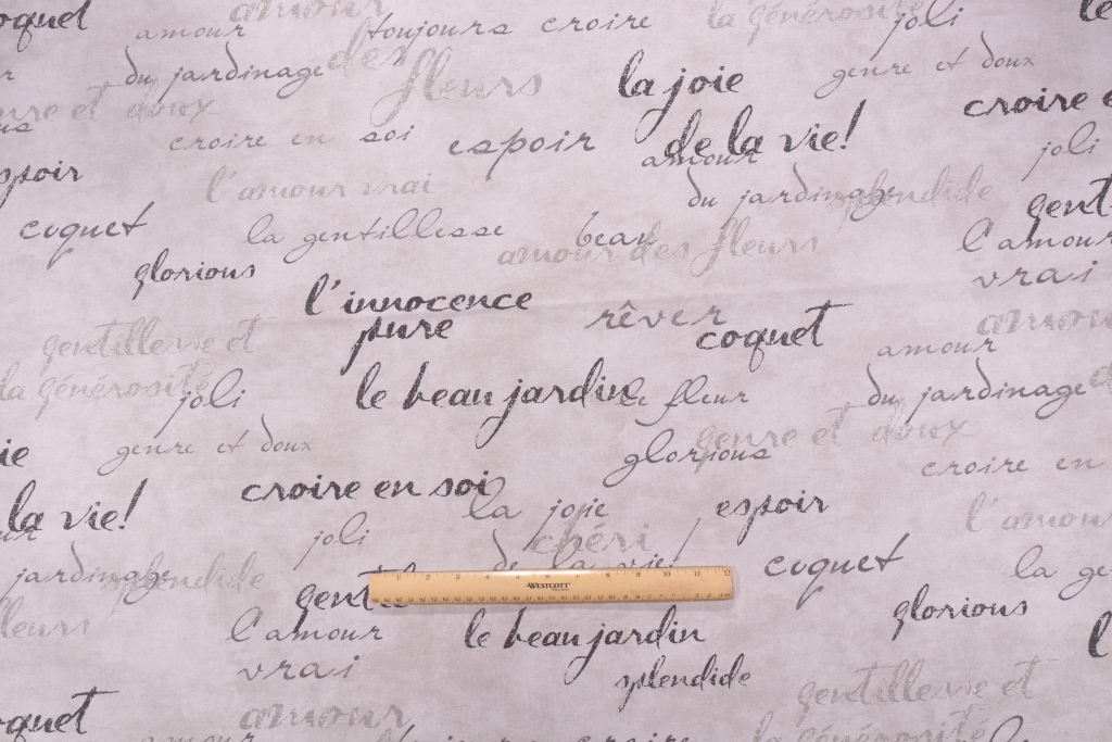 Waverly Script Printed Cotton Drapery Fabric in Grey is a remnant, which is sold as a whole piece.