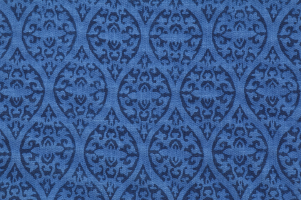 Waverly Ulla Printed Cotton Drapery Fabric in Cobalt is a remnant. Fabric remnants refer to leftover pieces of fabric from production runs at manufacturing sites or pieces that remain from by the yard stock. The lengths of these remnants can vary from a few inches to several yards and are typically sold at a reduced price, since they represent remaining inventory.