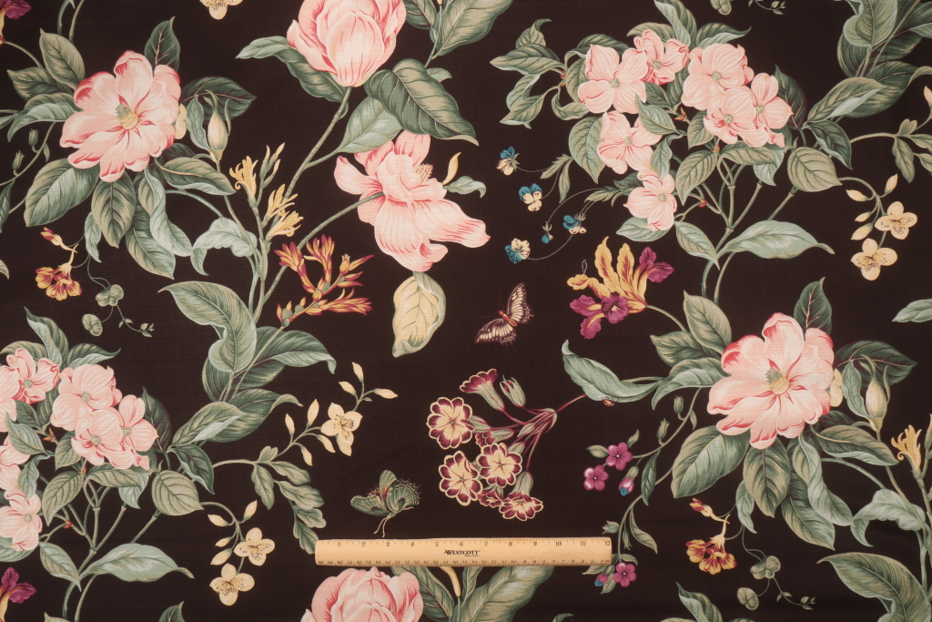 0.5 Yards Williamsburg Garden Images Printed Cotton Drapery Fabric in Noir Details
