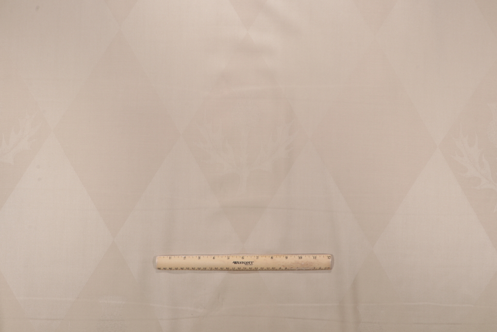 The length of this Scalamandre Harlequin Design Damask Decorator Fabric in Cream remnant is 4.38 yard(s).