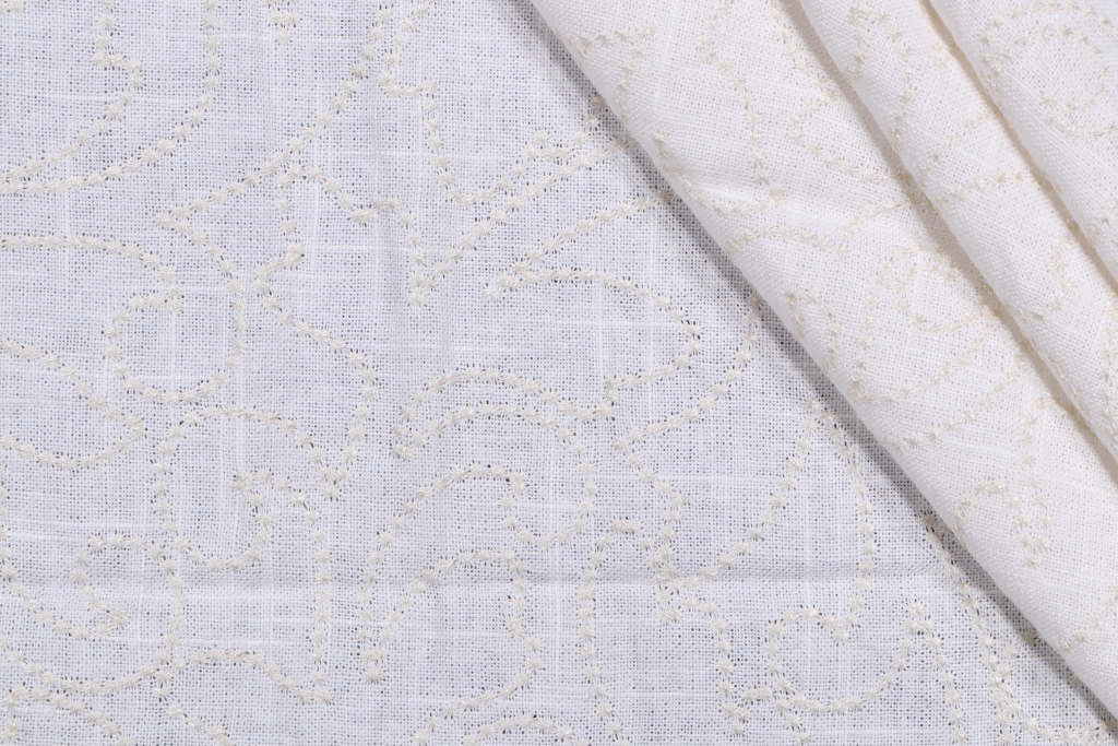 Vine Embroidered Drapery Fabric in Cream is a remnant, which is sold as a whole piece.