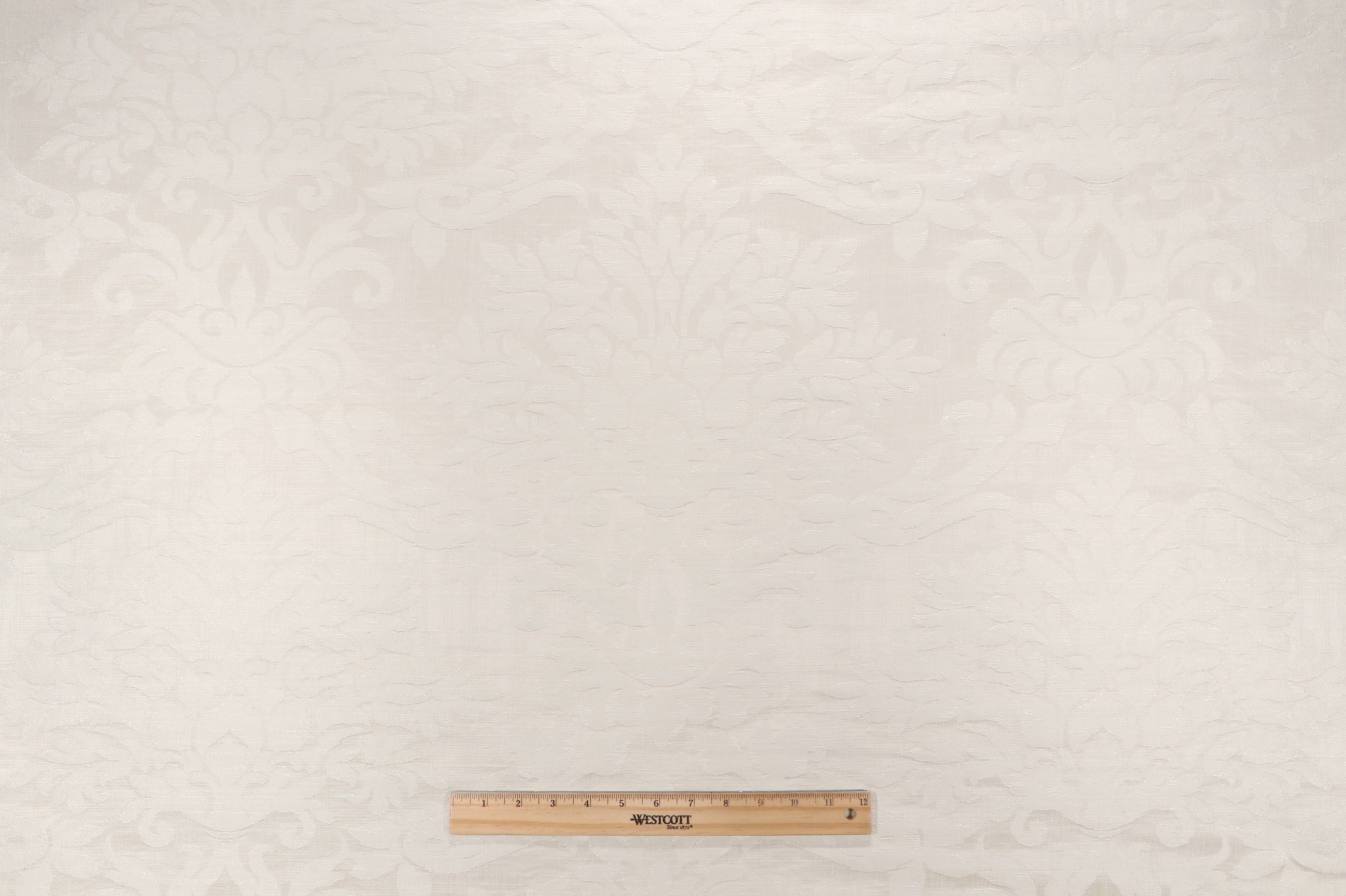 Grey Watkins Silvabella Damask Decorator Fabric in Creme for Scalamandre is a remnant, which is sold as a whole piece.