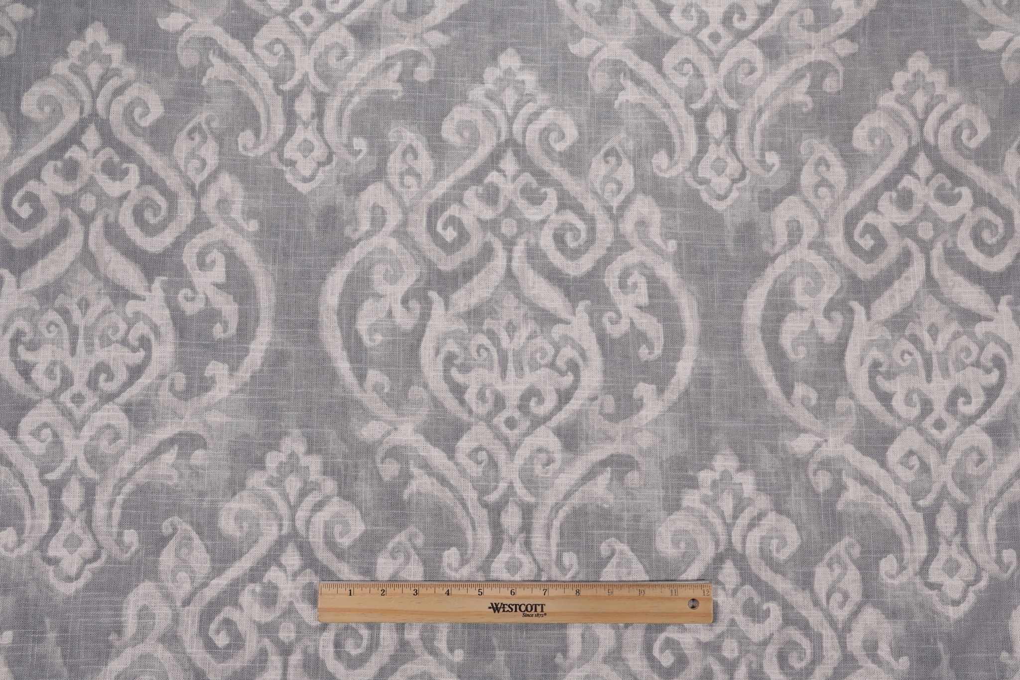 If you order a sample of Covington Natalia Printed Linen Blend Drapery Fabric in 91-Smoke the size of the swatch you receive will be approximately 4" x 6". This is enough fabric to verify color and texture, but may not be large enough to capture an entire pattern.