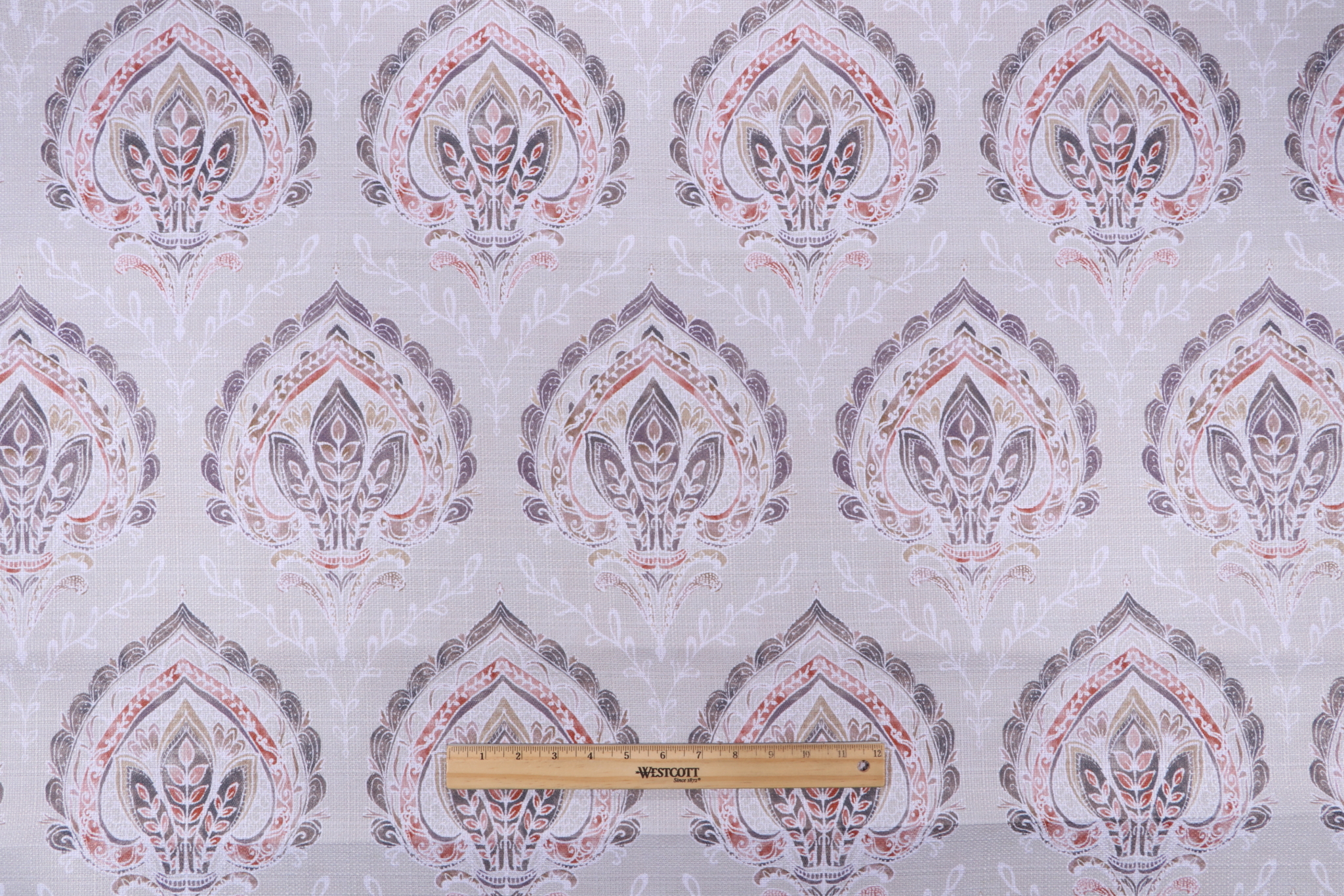 Featured here is 3 yards of Indira High Performance printed drapery fabric from Crypton. Known for excellence, Crypton fabrics provides an exceptional foundation for luxury home décor. This fabric is suitable for short curtains, decorative tiebacks, or smaller window treatments. Silver, light steel blue, dark gray, thistle, and gray feature prominently in this fabric. Note: If you are unsure about the suitability of this fabric for your specific use case please contact us prior to ordering.