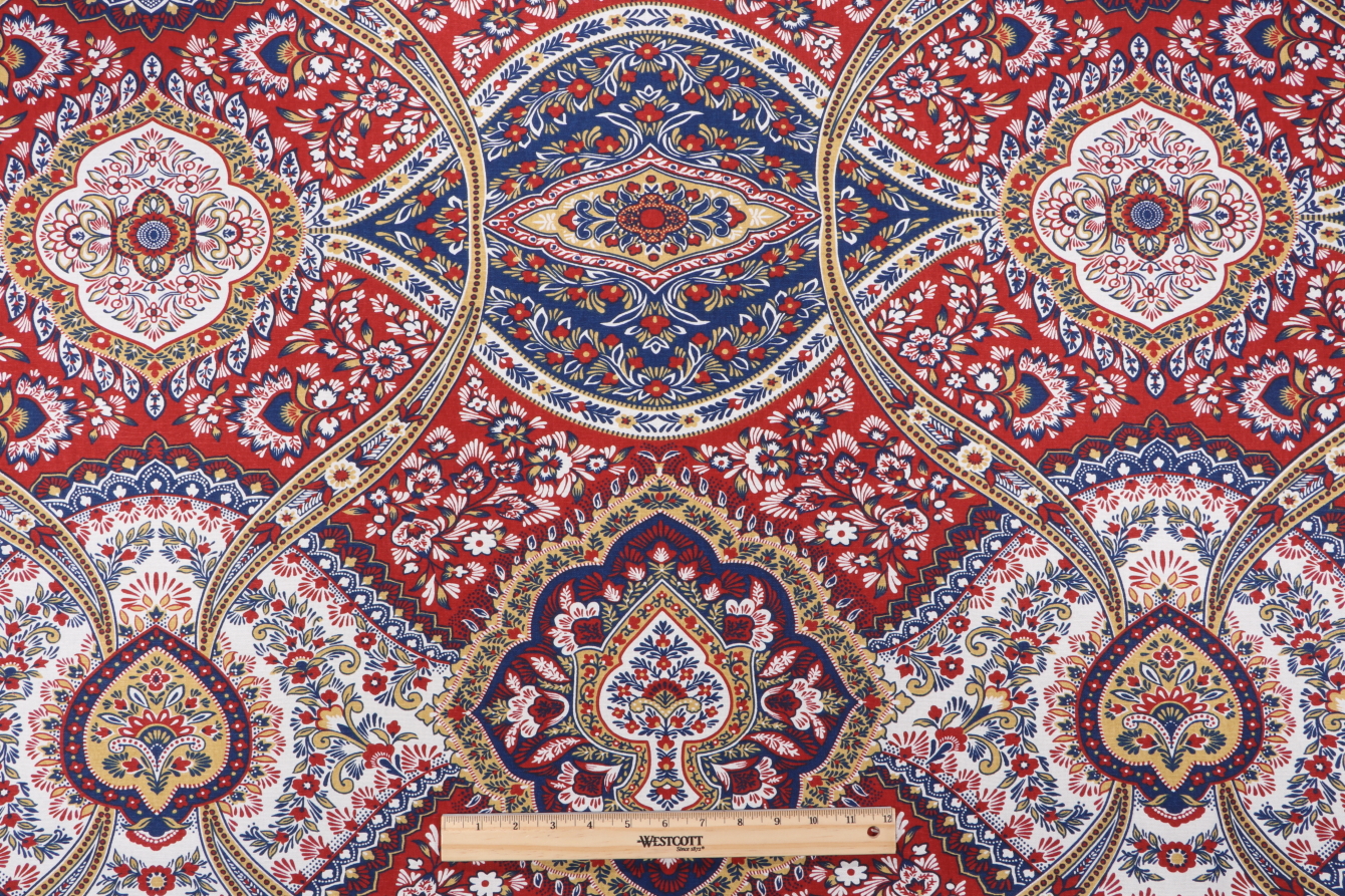 0.88 Yards Duralee Abbotsford Printed Cotton Drapery Fabric in Red and Blue Details