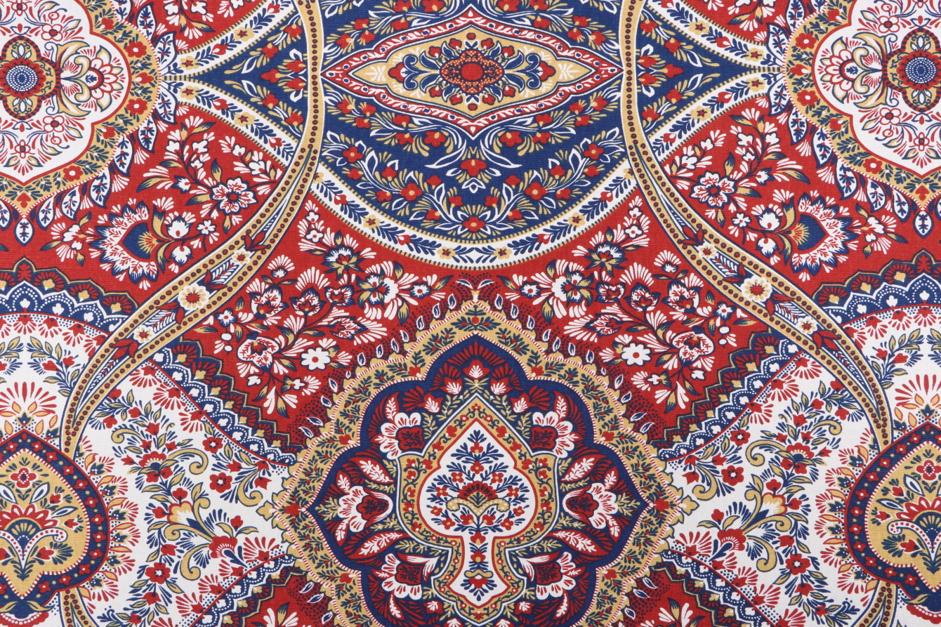 Duralee Abbotsford Printed Cotton Drapery Fabric in Red and Blue is a remnant. Fabric remnants refer to leftover pieces of fabric from production runs at manufacturing sites or pieces that remain from by the yard stock. The lengths of these remnants can vary from a few inches to several yards and are typically sold at a reduced price, since they represent remaining inventory.