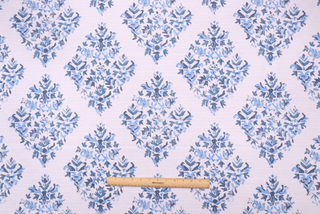 Lacefield Blythe-White Flax Printed Cotton Drapery Fabric in Pacific is a remnant, which is sold as a whole piece.