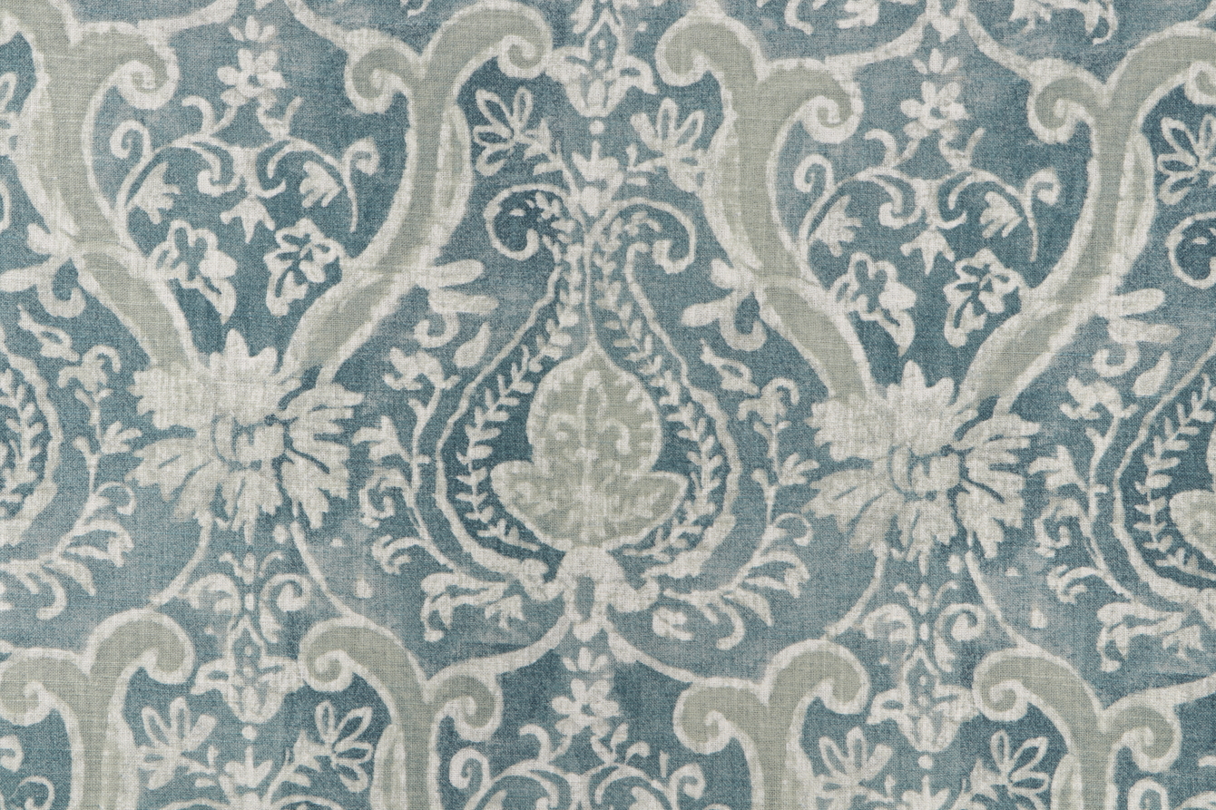 8.5 Yards PK Lifestyles Sarasa Printed Linen Blend Drapery Fabric in Lagoon Details