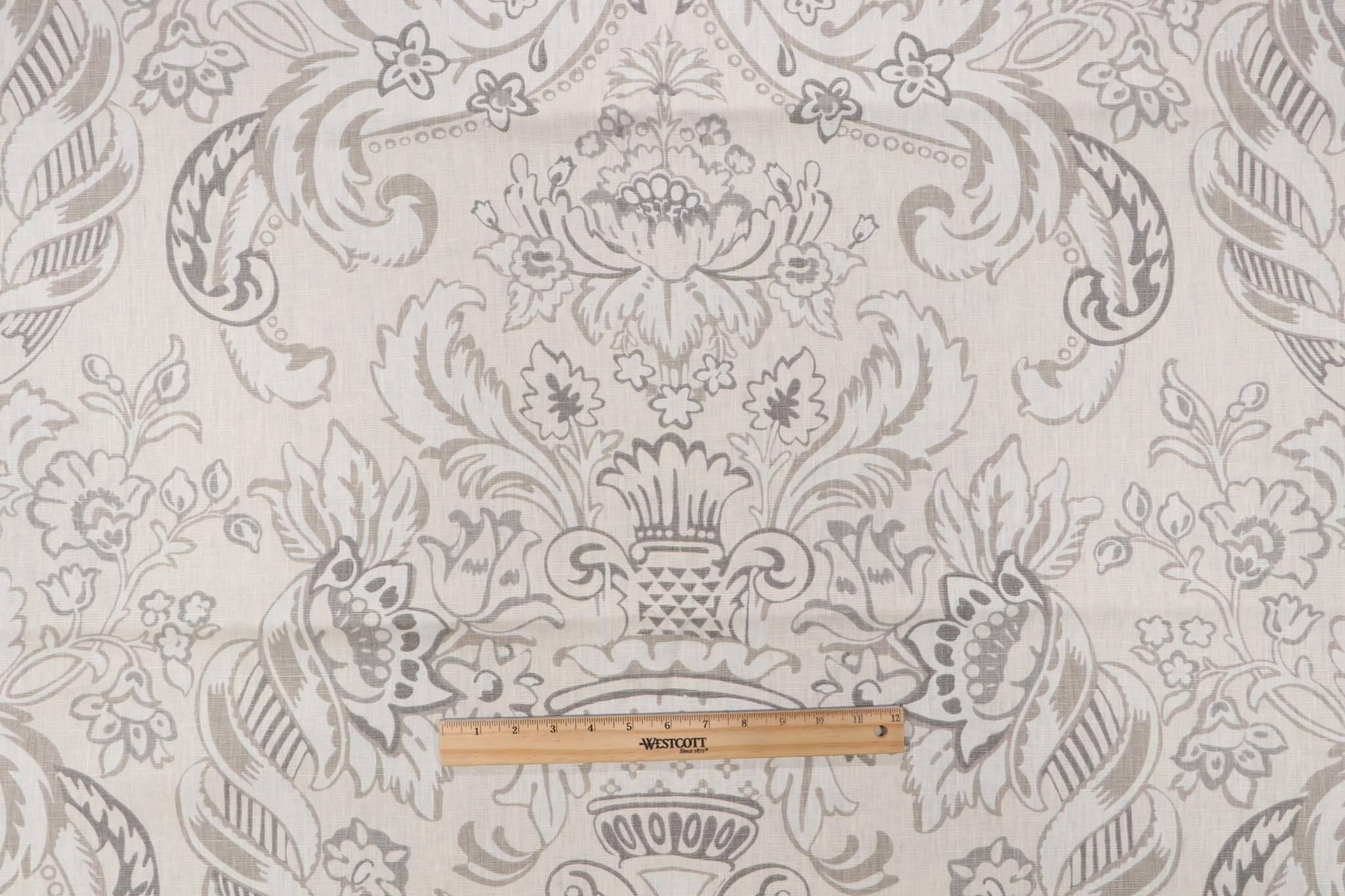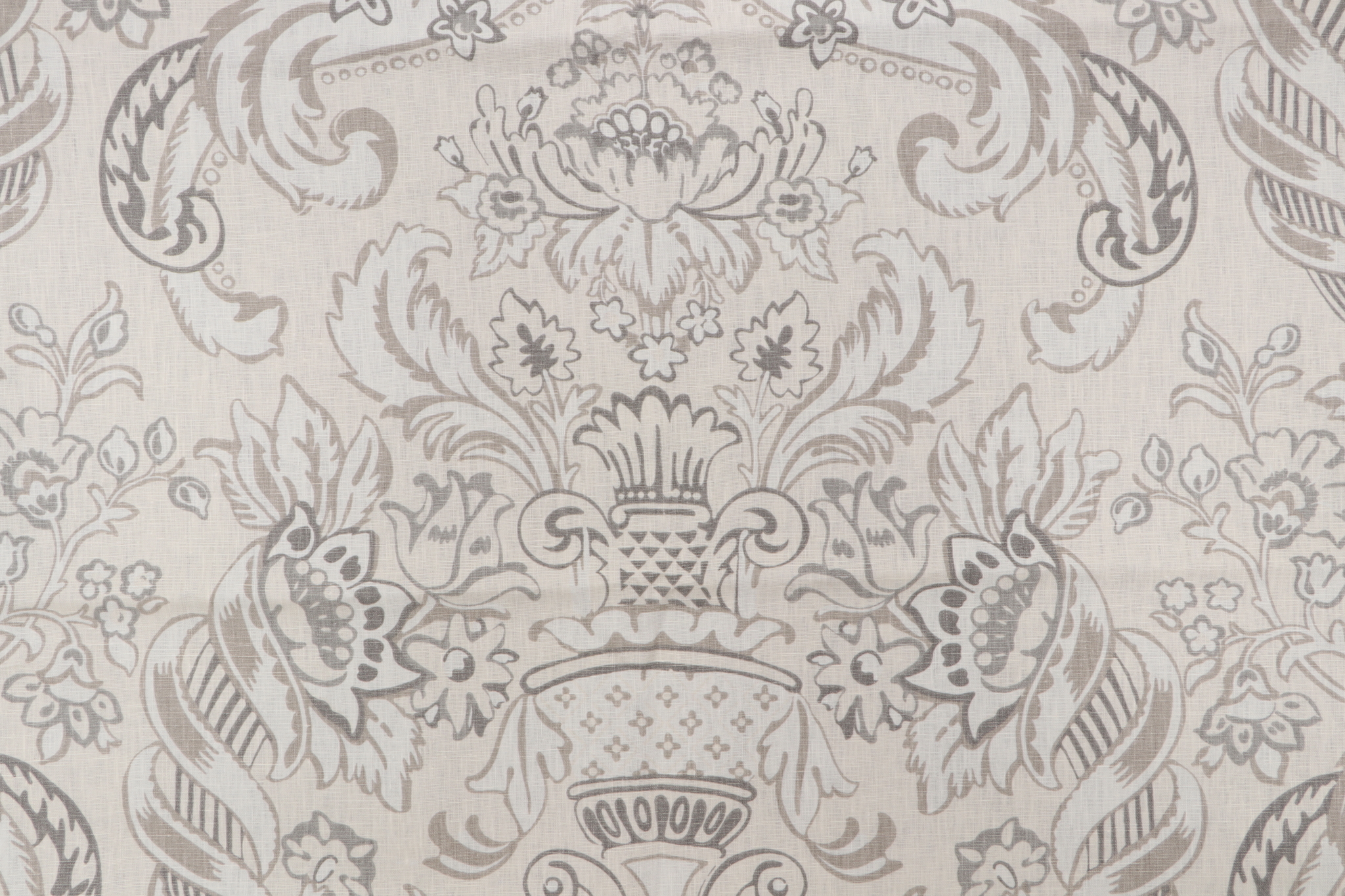 Offering 4.25 yards of Portfolio Textiles Royale, a fine printed linen drapery fabric designed by Kravet. This fabric is suitable for short curtains, decorative tiebacks, or smaller window treatments. Kravet is a premier choice among interior designers, offering high-end fabrics with a focus on fine craftsmanship, exclusive collaborations, and timeless appeal. Soft and inviting, the silver, dark gray, light gray, gainsboro, and rosy brown hues in this fabric are ideal for a calming, natural look. Note: If you are unsure about the suitability of this fabric for your specific use case please contact us prior to ordering.