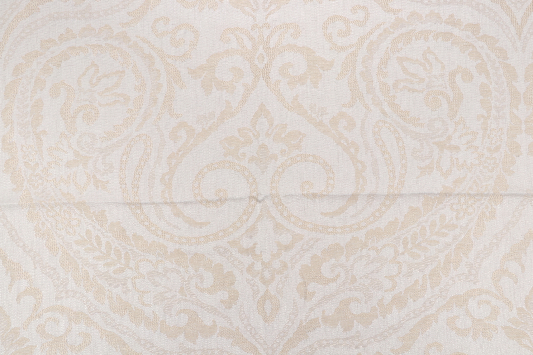 Scalamandre Blanchisserie Damask Decorator Fabric in Parchment is a remnant, which is sold as a whole piece.