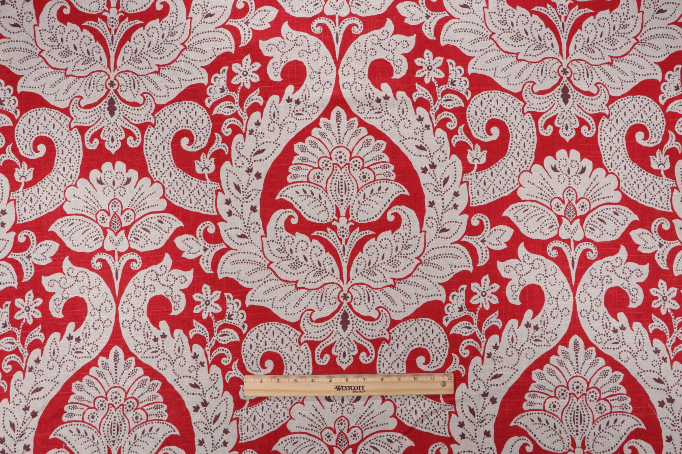 Suburban Home Betsy Printed Linen Drapery Fabric in Red Details
