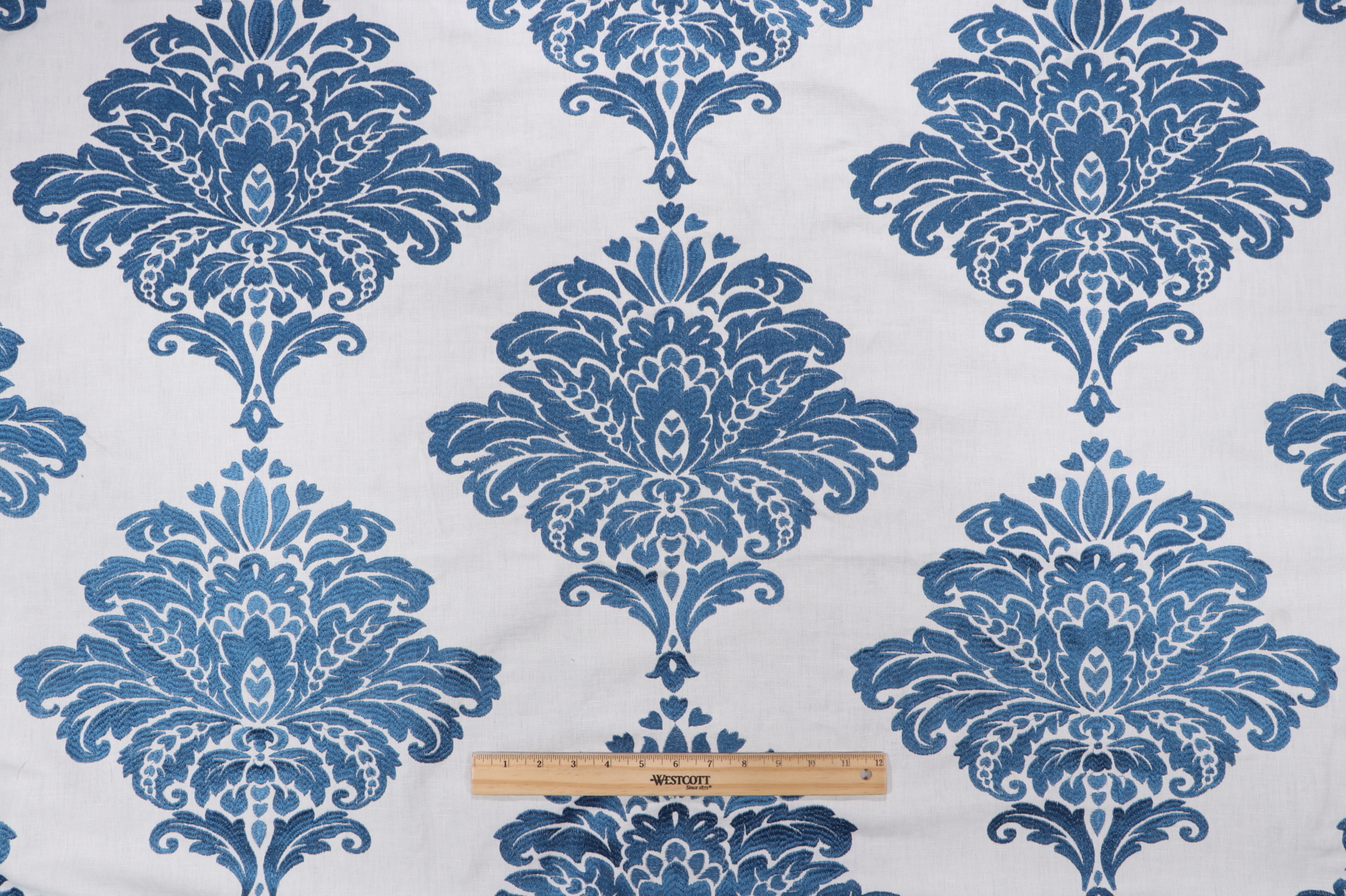 4.38 Yards Thibaut Arturo Damask W713014 Embroidered Drapery Fabric in Navy on White Details