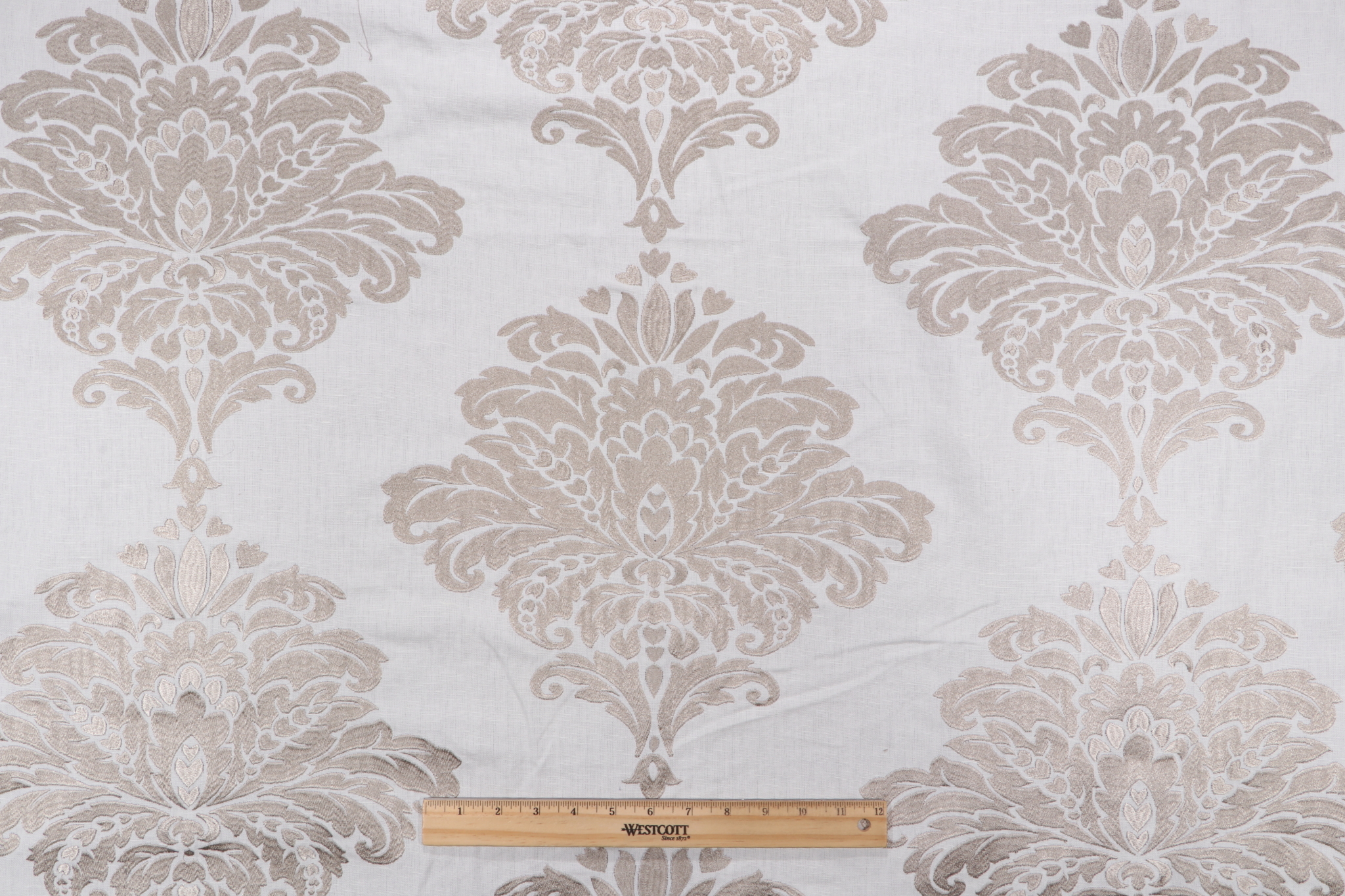 1 Yards Thibaut Arturo Damask W713017 Embroidered Drapery Fabric in Grey on White Details