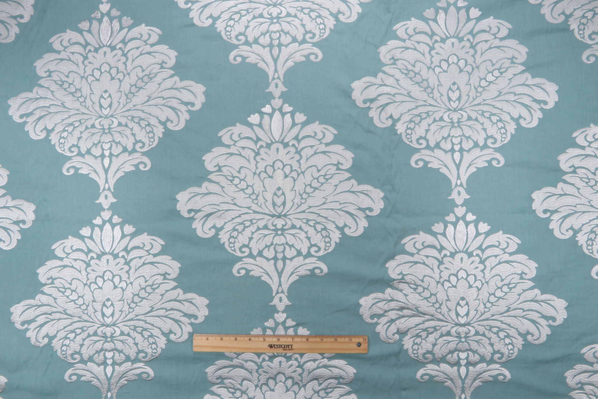 1 Yards Thibaut Arturo Damask W71305 Embroidered Drapery Fabric in White on Turquoise Details