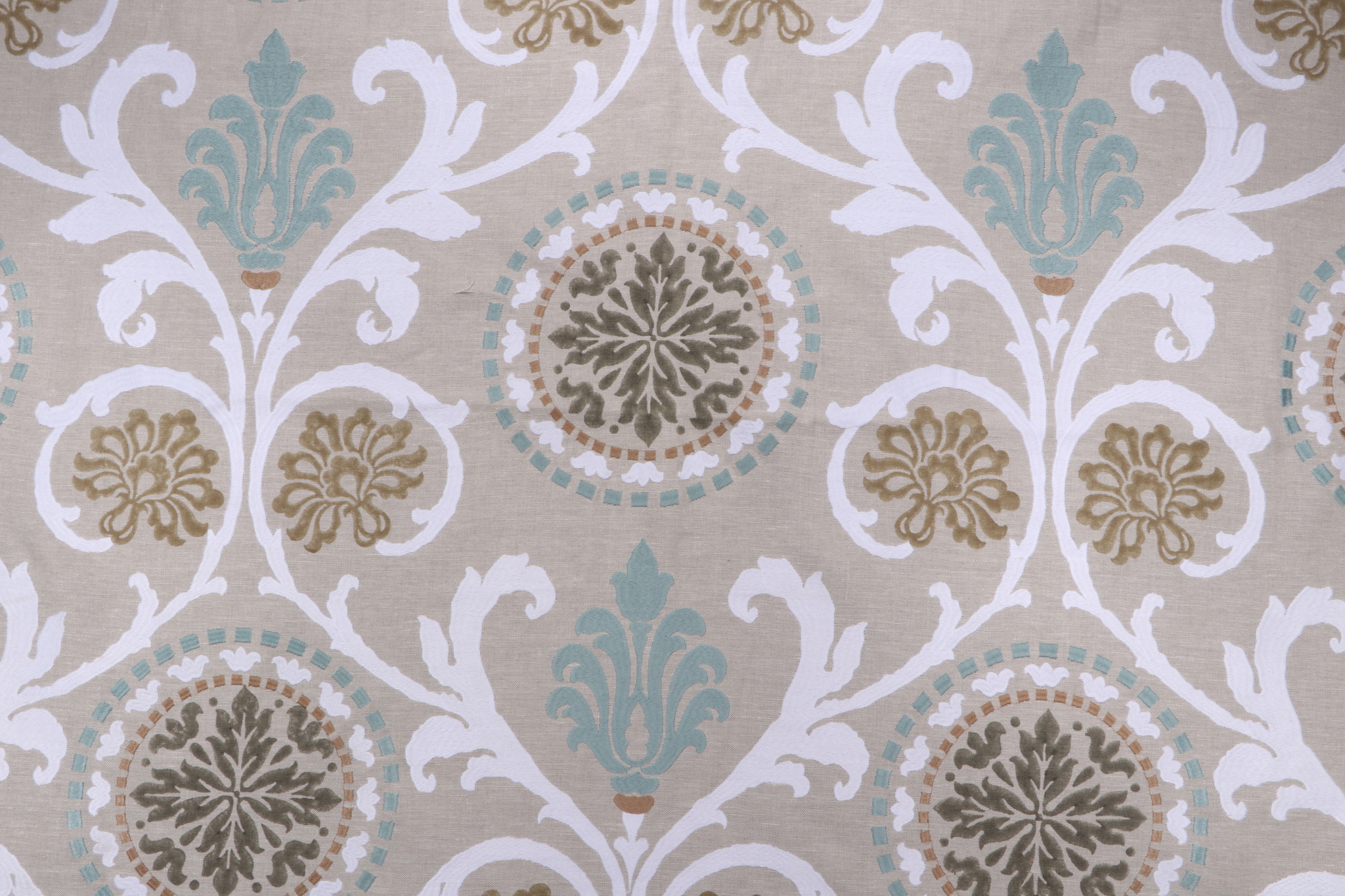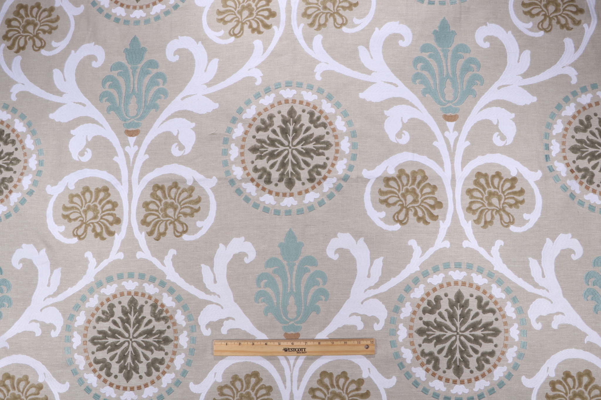 1 Yards Thibaut Banyan W764100 Printed & Embroidered Linen Decorator Fabric in Aqua Details