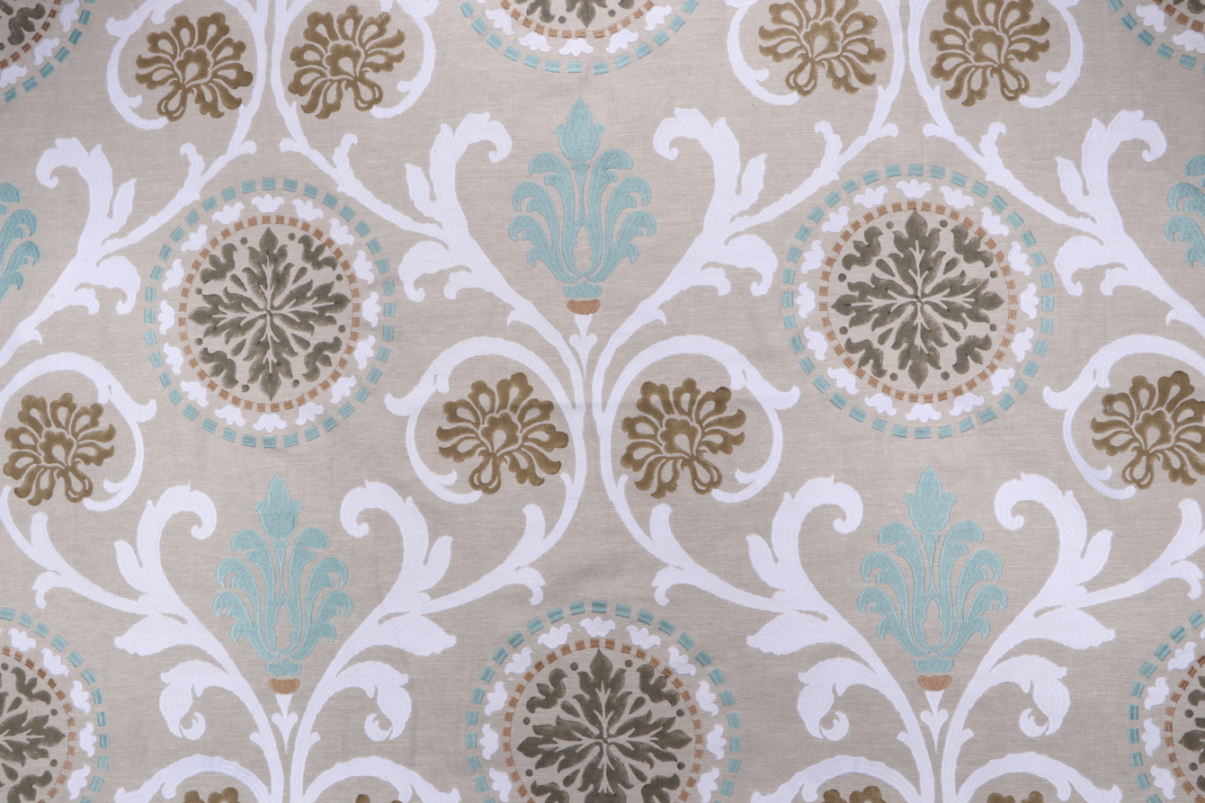 1 Yards Thibaut Banyan W764100 Printed & Embroidered Linen Drapery Fabric in Aqua Details