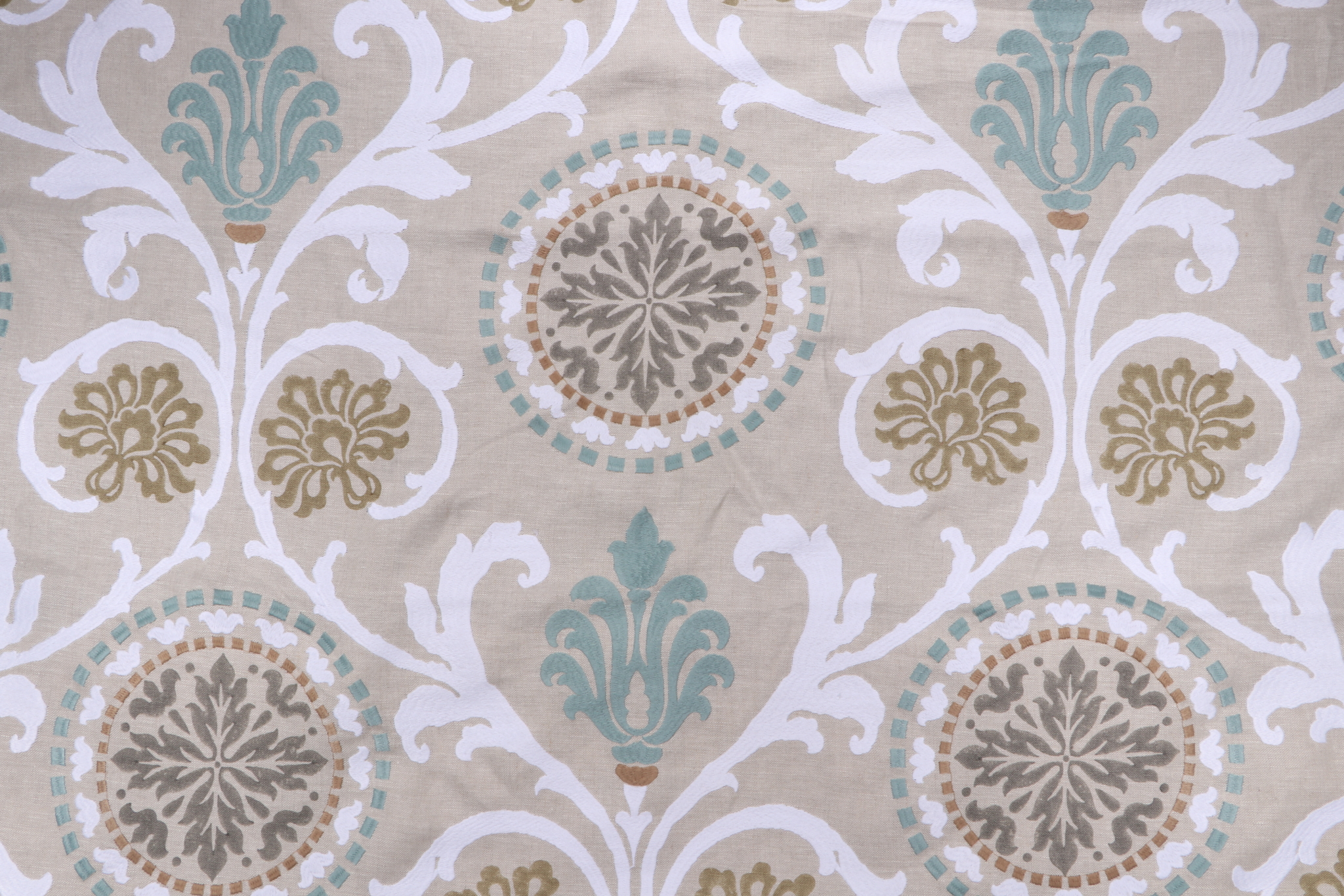 2 Yards Thibaut Banyan W764100 Printed & Embroidered Linen Drapery Fabric in Aqua Details