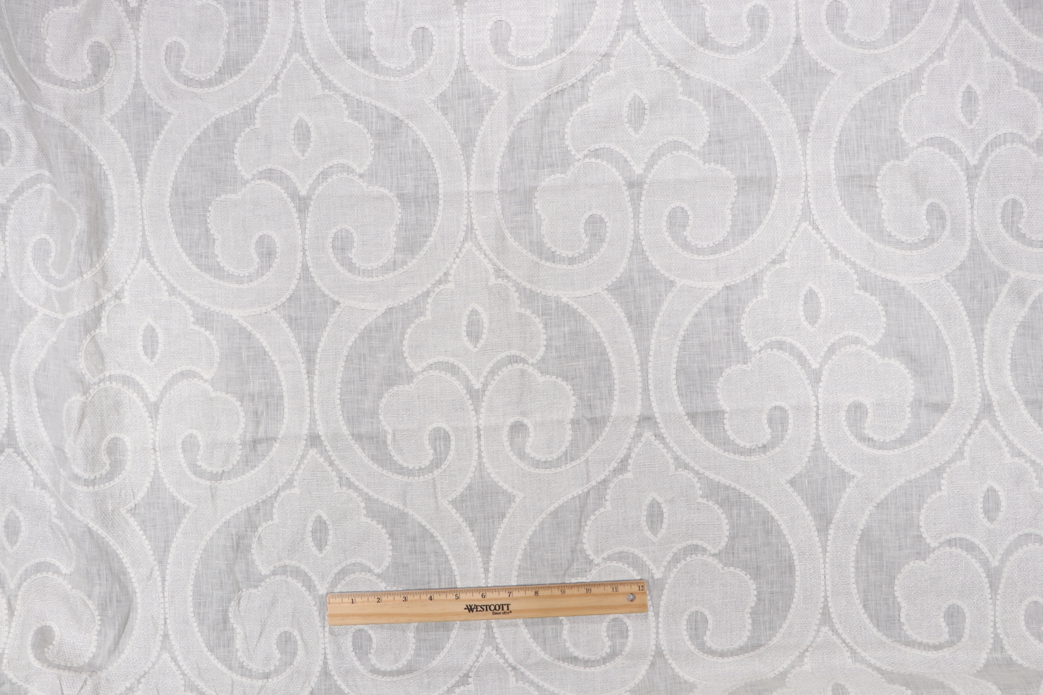 Thibaut Clovis W714263 Embroidered Linen Drapery Fabric in Off-White is a remnant, which is sold as a whole piece.