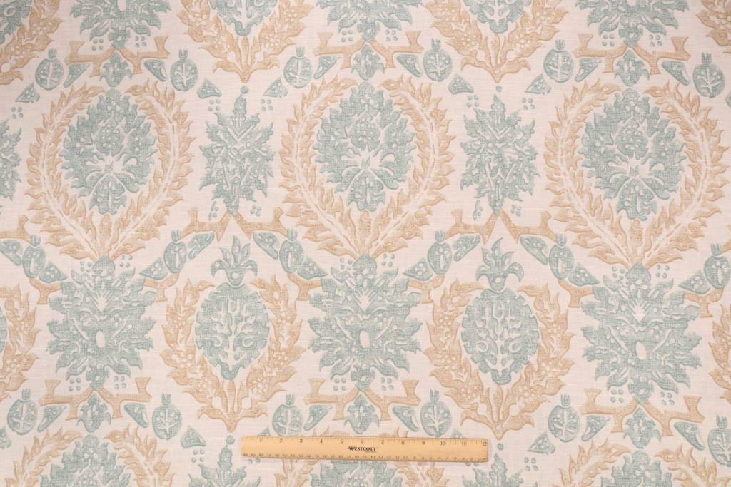 3.63 Yards Thibaut Haleema F97935 Printed Linen Blend Drapery Fabric in Aqua & Beige Details
