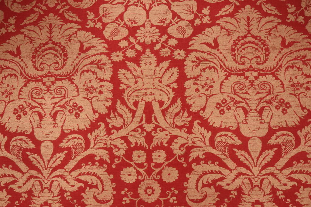 Thibaut Manhattan Damask F91727 Printed Drapery Fabric in Scarlet is a remnant. Fabric remnants refer to leftover pieces of fabric from production runs at manufacturing sites or pieces that remain from by the yard stock. The lengths of these remnants can vary from a few inches to several yards and are typically sold at a reduced price, since they represent remaining inventory.