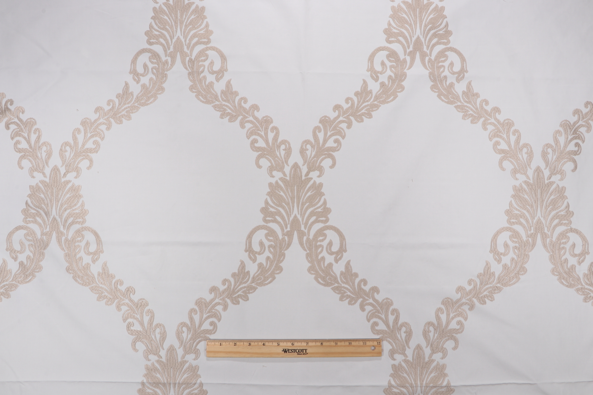 Thibaut Olbia Embroidery AF26143 Embroidered Drapery Fabric in Off-White is a remnant, which is sold as a whole piece.