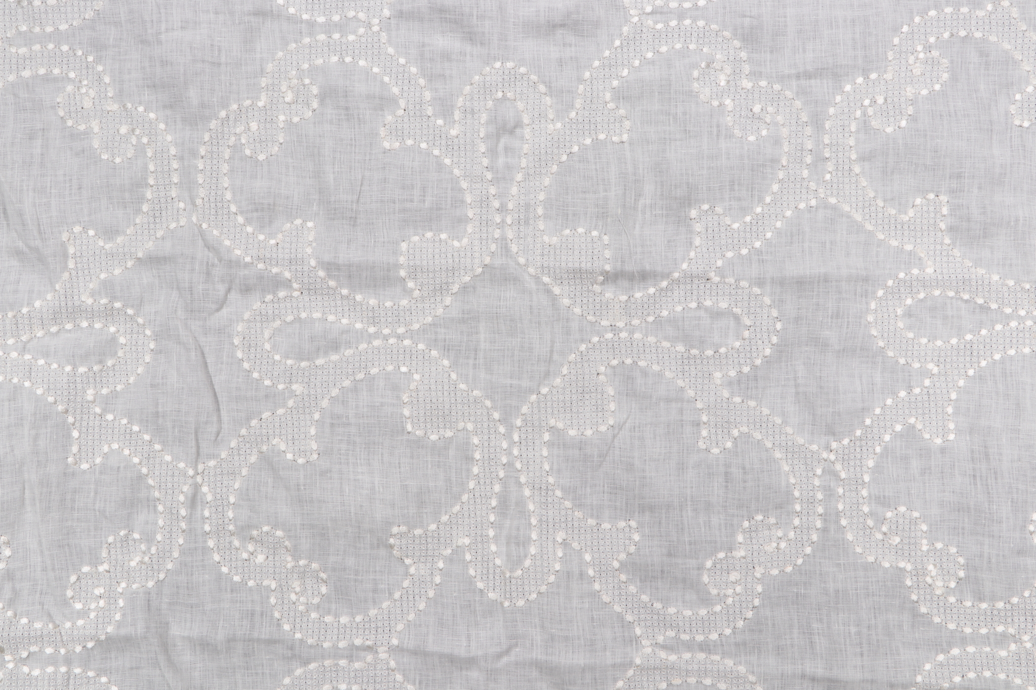 Thibaut Park Slope W764118 Embroidered Drapery Fabric in White is a remnant, which is sold as a whole piece.