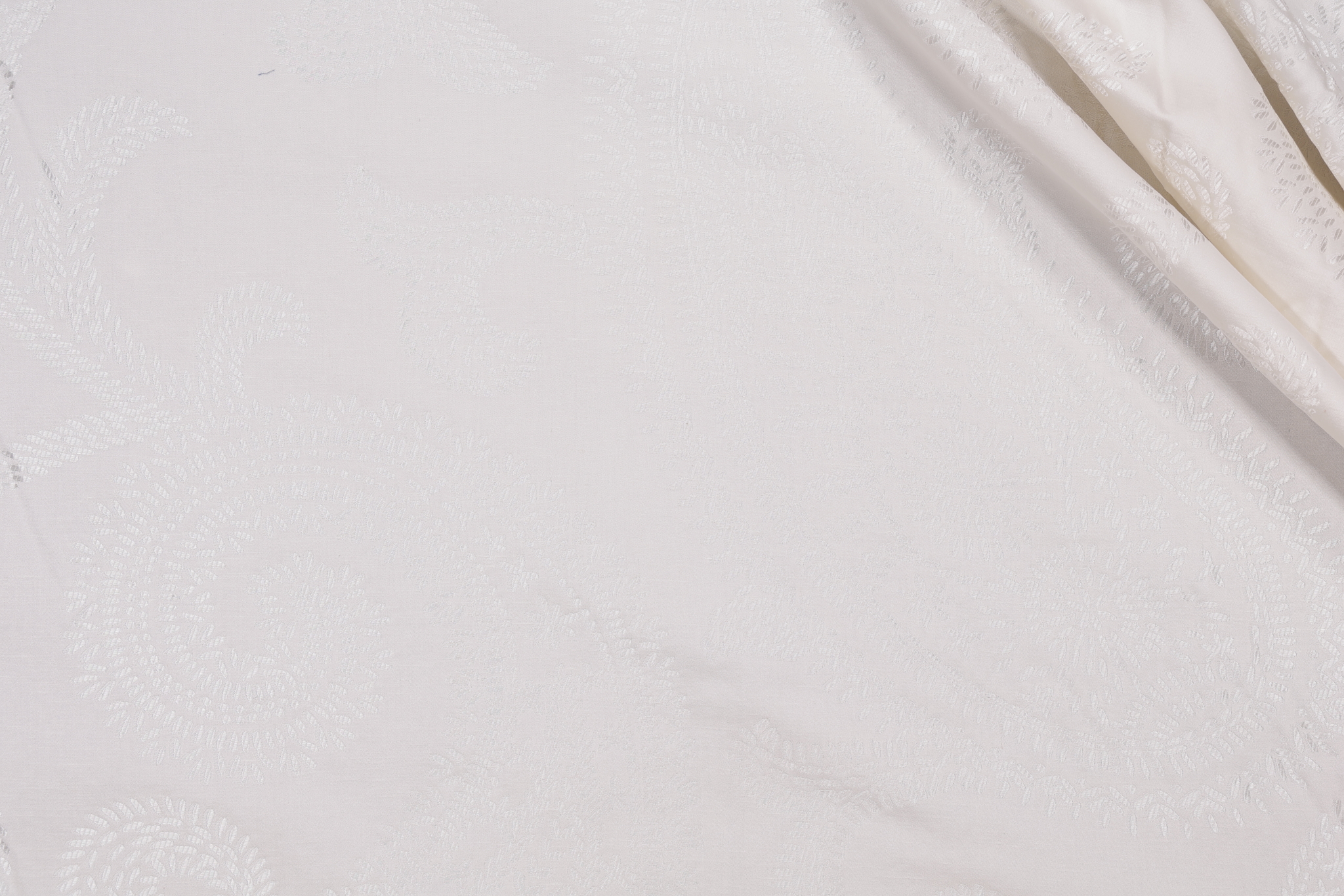 Anna French Bradford Paisley AW9131 Damask Decorator Fabric in White for Thibaut is a remnant. Fabric remnants refer to leftover pieces of fabric from production runs at manufacturing sites or pieces that remain from by the yard stock. The lengths of these remnants can vary from a few inches to several yards and are typically sold at a reduced price, since they represent remaining inventory.