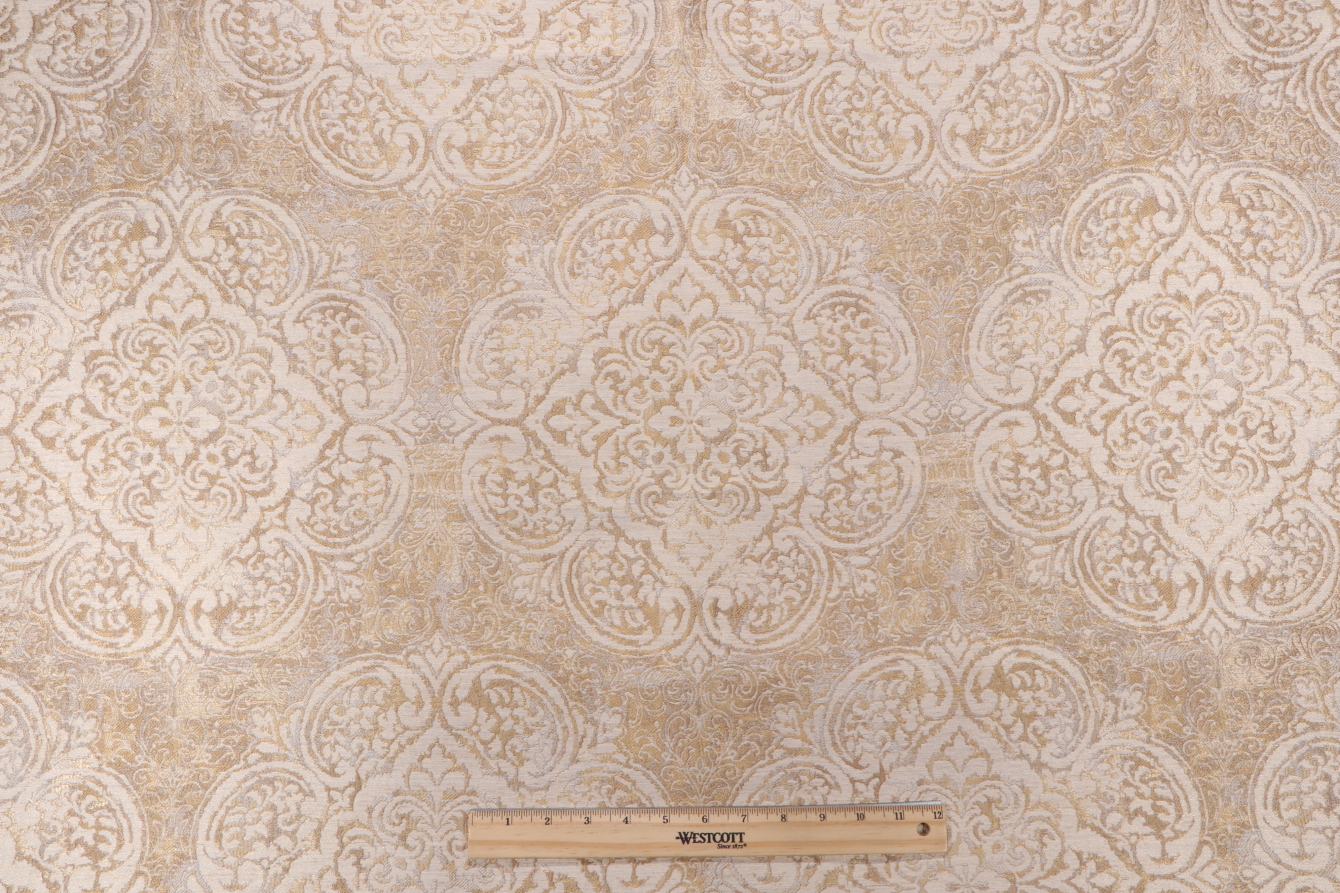 3.88 Yards Covington Vogue Damask Woven Upholstery Fabric in 820-Empire Gold Details