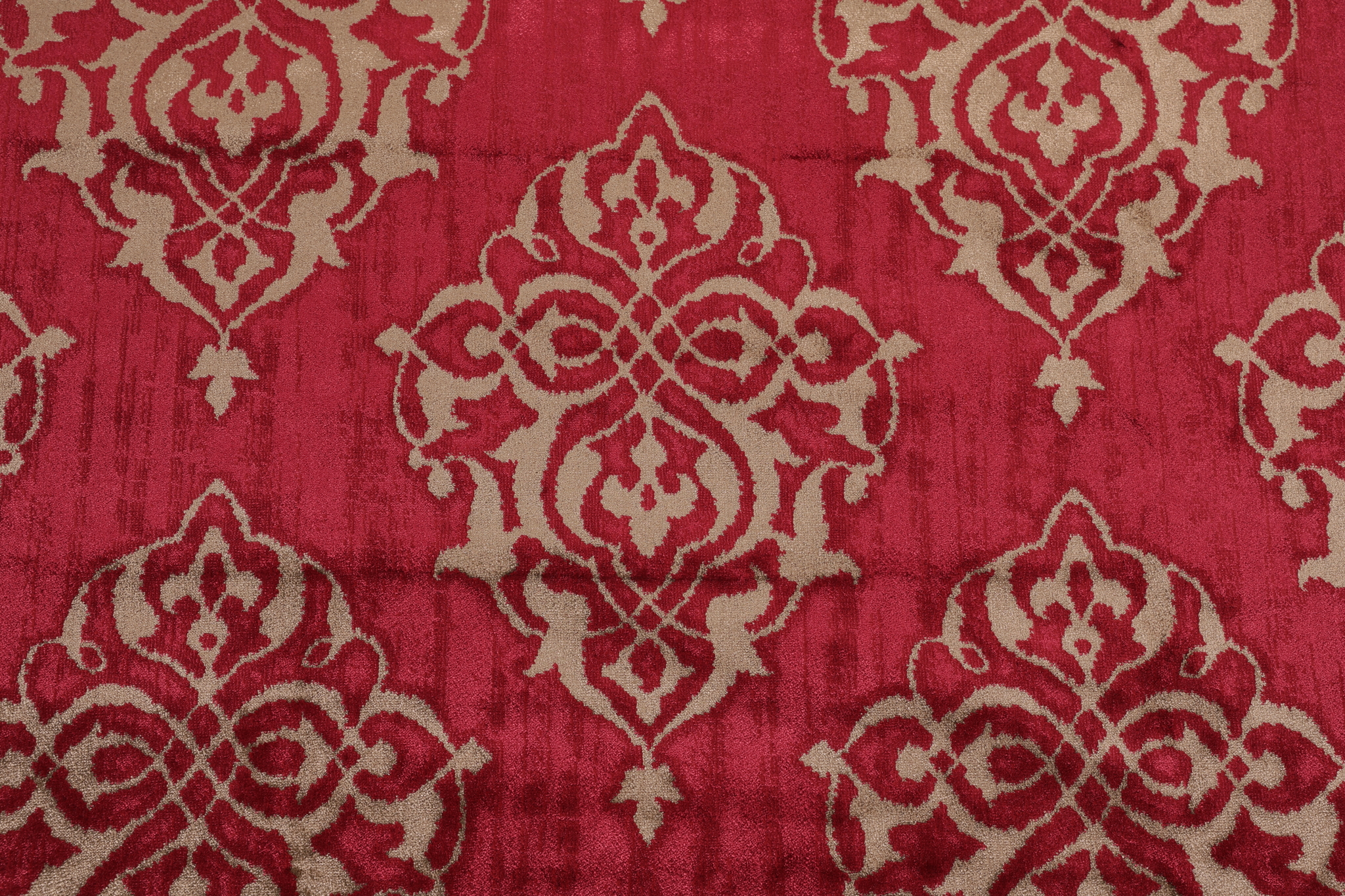 7 Yards Damask Velvet Upholstery Fabric in Ruby Details