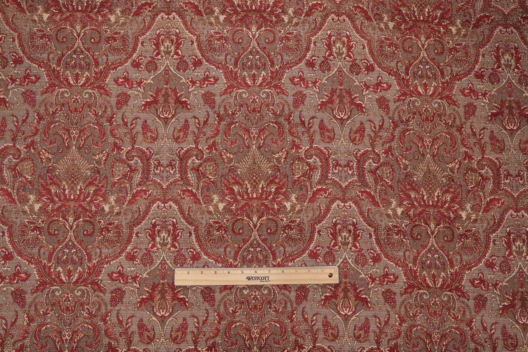 1 Yards Edna Woven Chenille Damask Upholstery Fabric in Red/Gold Details