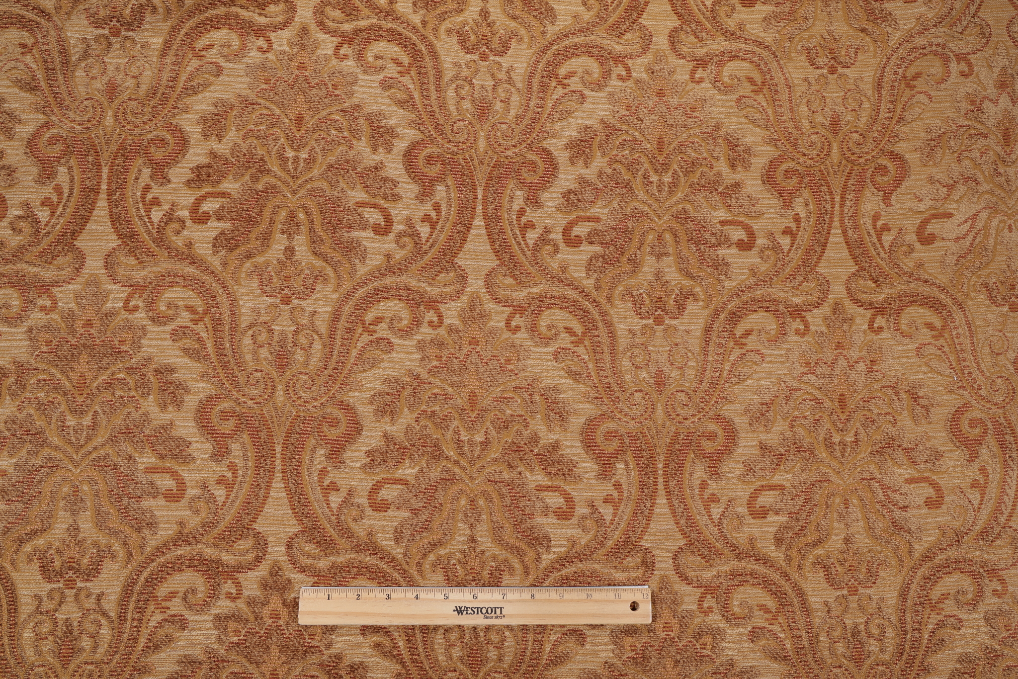 If you order Ellison Chenille Damask Upholstery Fabric in Gold before 2pm Central with expedited shipping, your order will ship the same business day, otherwise please allow 1-2 business days.How soon will this fabric ship?