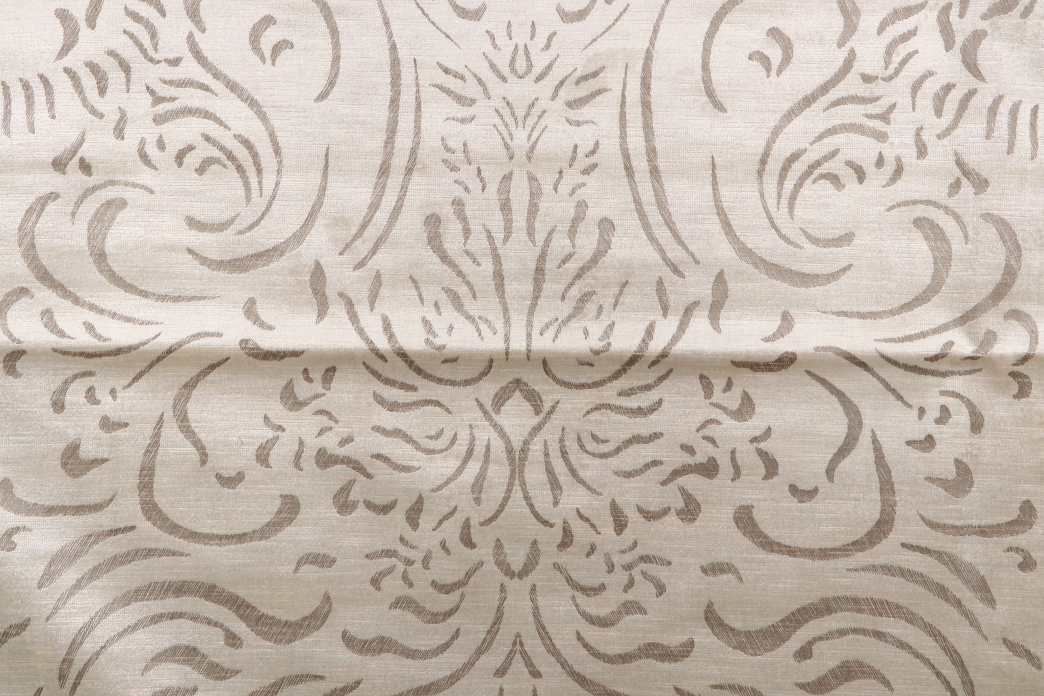 Fonthill Pushkin Damask Velvet Upholstery Fabric in Tannin is a remnant, which is sold as a whole piece.