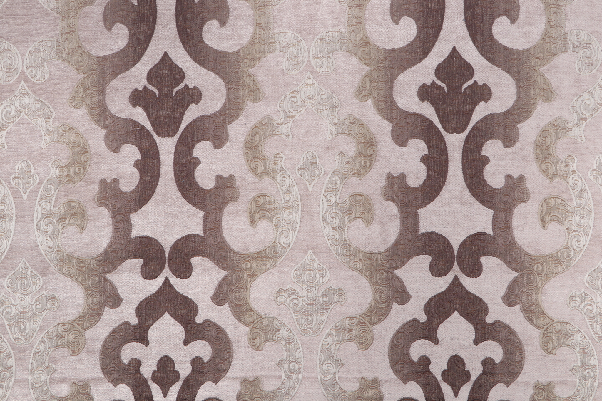 1 Yards Glendive Chenille Damask Upholstery Fabric in Taupe Details