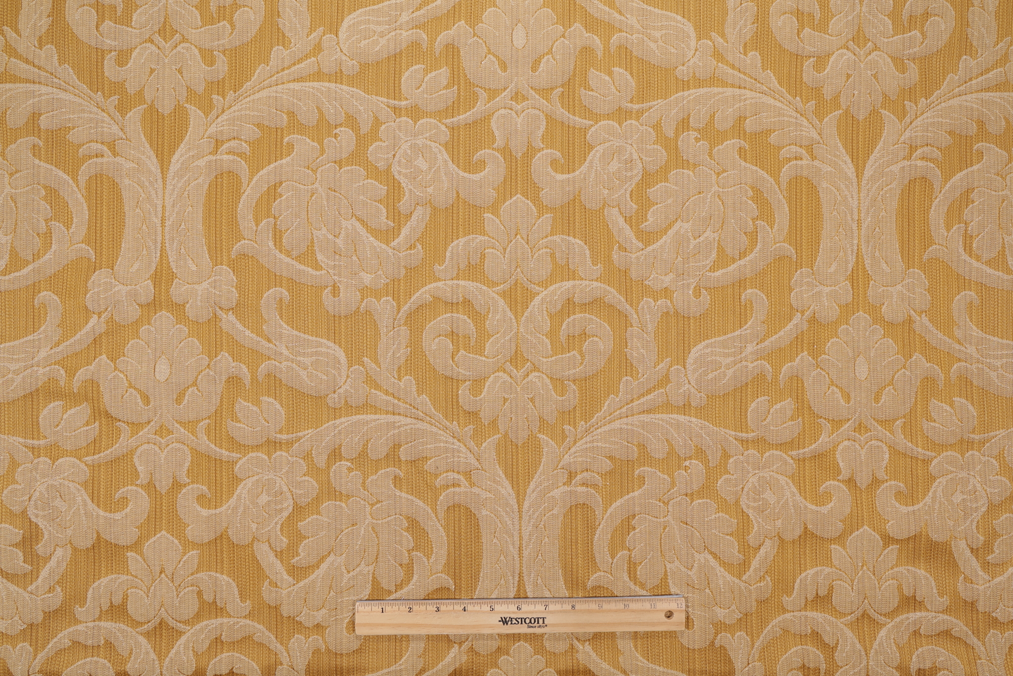 Grey Watkins Damasco Rustico Damask Decorator Fabric in Gold is a remnant, which is sold as a whole piece.