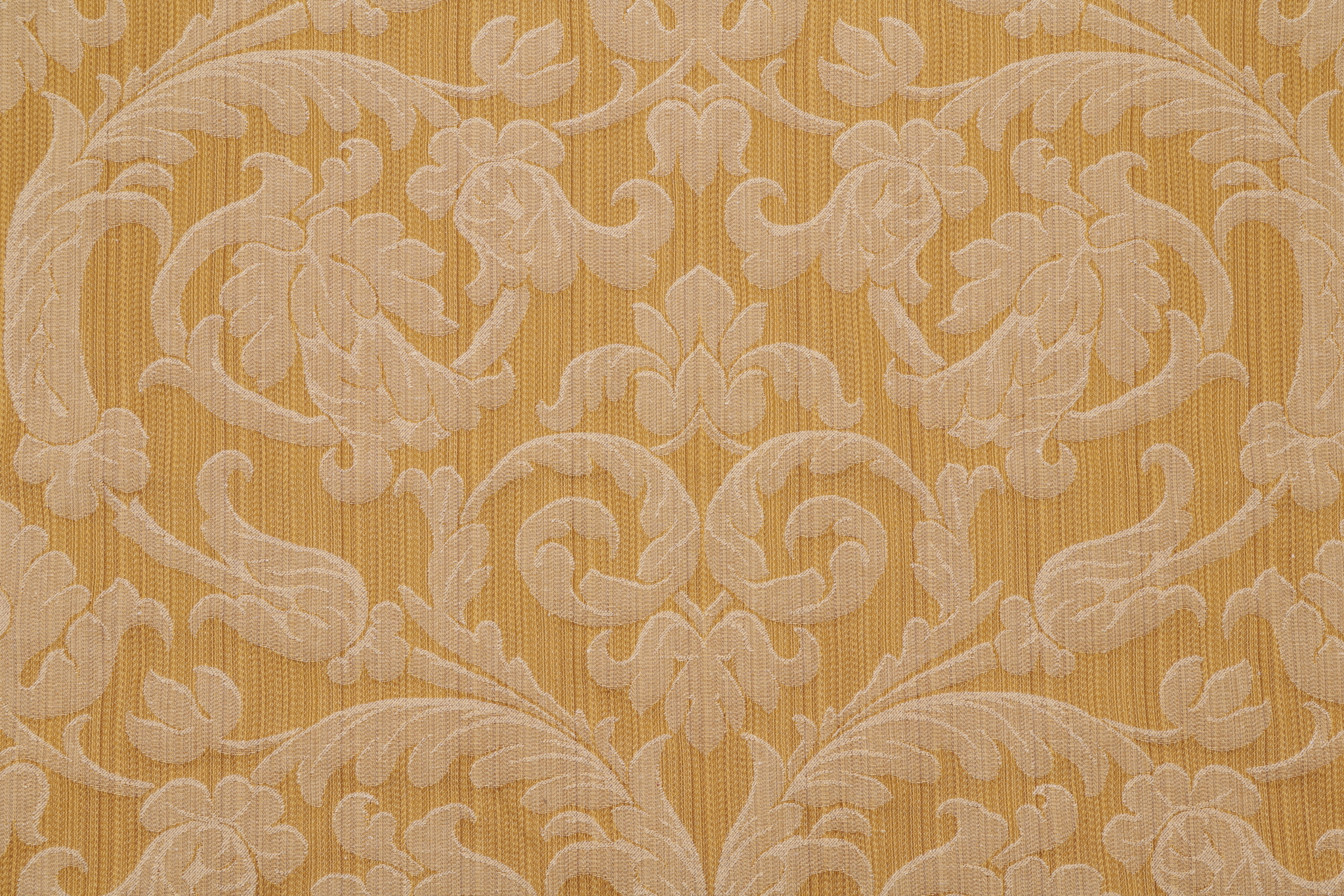 Grey Watkins Damasco Rustico Damask Decorator Fabric in Gold is a remnant. Fabric remnants refer to leftover pieces of fabric from production runs at manufacturing sites or pieces that remain from by the yard stock. The lengths of these remnants can vary from a few inches to several yards and are typically sold at a reduced price, since they represent remaining inventory.