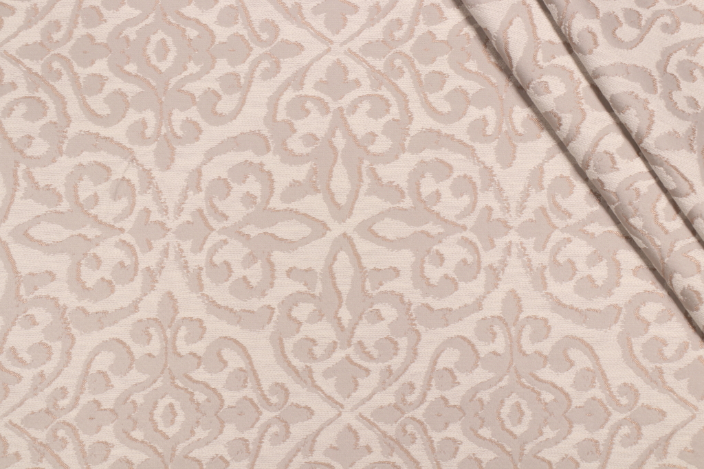 This is 1.13 yards of Coralie, a high-quality damask upholstery fabric from PK Lifestyles. Ideal for small projects such as decorative pillows, cushion covers, handbags, or fabric trays. This premium textile from PK Lifestyles fabrics brings sophistication and quality to your high-end design projects. With its soft, neutral tones of silver, tan, light gray, dark gray, and wheat, this fabric blends effortlessly into any space. Note: If you are unsure about the suitability of this fabric for your specific use case please contact us prior to ordering.