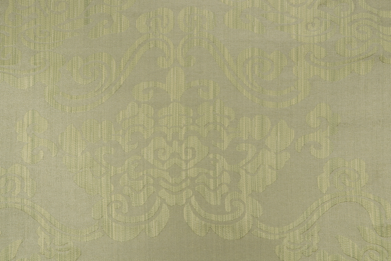 Scalamandre Damask Upholstery Fabric in Sage is a remnant. Fabric remnants refer to leftover pieces of fabric from production runs at manufacturing sites or pieces that remain from by the yard stock. The lengths of these remnants can vary from a few inches to several yards and are typically sold at a reduced price, since they represent remaining inventory.
