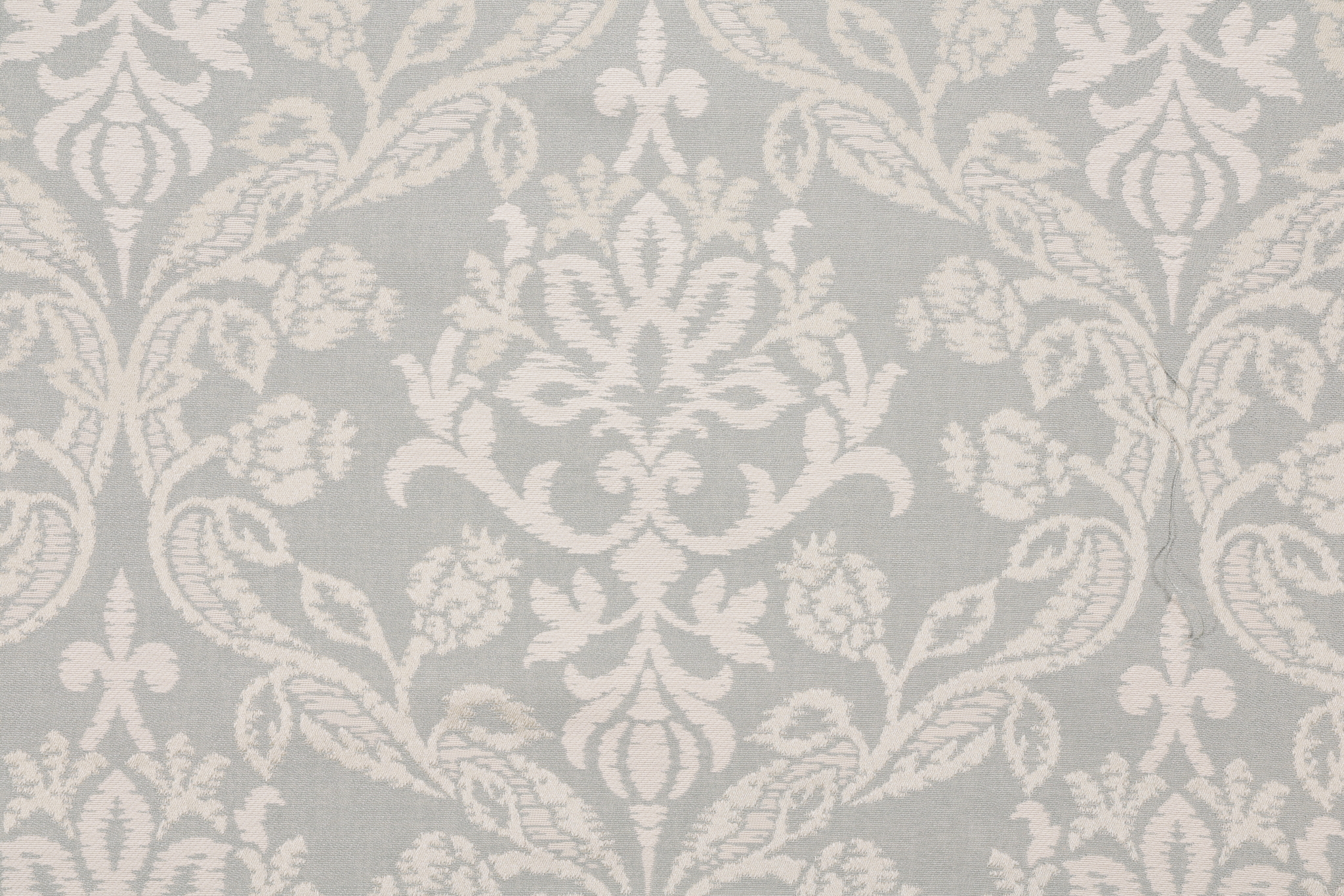 Scalamandre Decora Damask Decorator Fabric in Sky is a remnant. Fabric remnants refer to leftover pieces of fabric from production runs at manufacturing sites or pieces that remain from by the yard stock. The lengths of these remnants can vary from a few inches to several yards and are typically sold at a reduced price, since they represent remaining inventory.