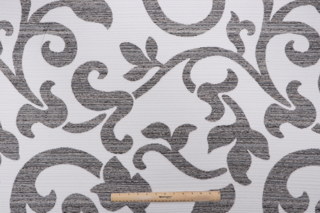Specialty Textiles Sonato Woven Damask Upholstery Fabric in Bisque/Charcoal Details